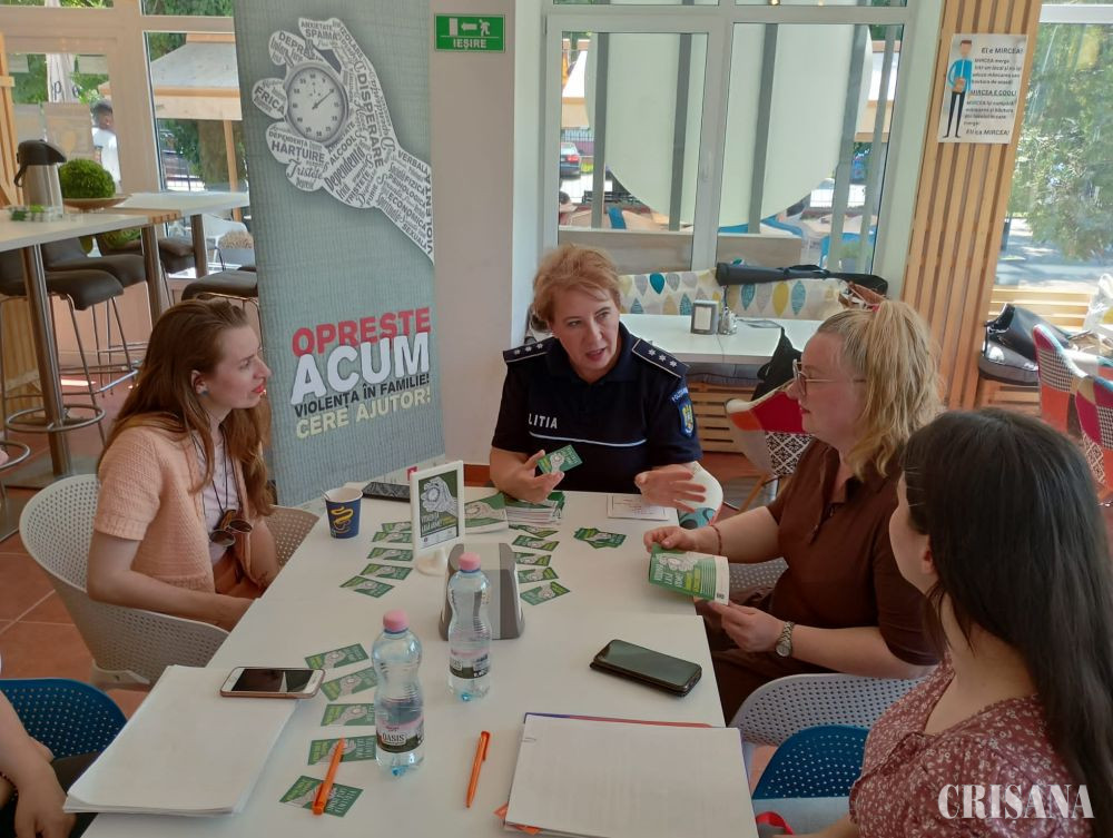 Cei prezenți au avut ocazia să servească o cafea sau o băutură răcoritoare și, în același timp, să primească informații utile de la polițiștii bihoreni, despre formele de manifestare a violenței în cuplu, cu privire la instituțiile implicate în gestionarea acestui fenomen, precum și despre drepturile și măsurile prevăzute de lege pentru asigurarea protecției victimelor violenței în familie.