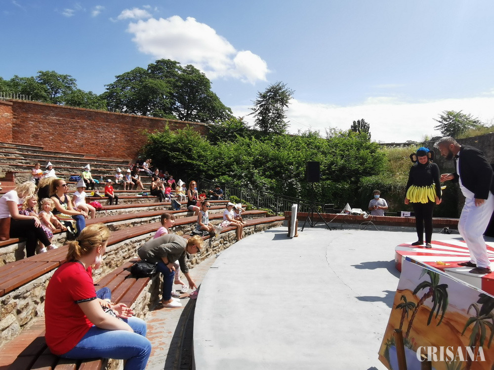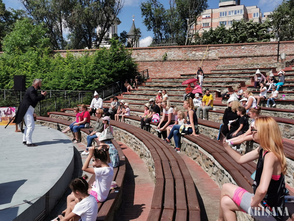 Şcoala de vară la care sunt invitaţi copiii cuprinde activităţi creative, ore de dans, limba germană şi engleză, dar şi jocuri în aer liber, dezvoltare personală, cercuri de lectură, sau excursii în Oradea şi împrejurimi. Şi pentru că tematica primei săptămâni a fost Lumea Poveştilor, copiii au venit în Amfiteatrul din Cetate, pentru a viziona spectacolul Apolodor, pinguinul călător, oferit de trupa Arcadia a Teatrului Regina.