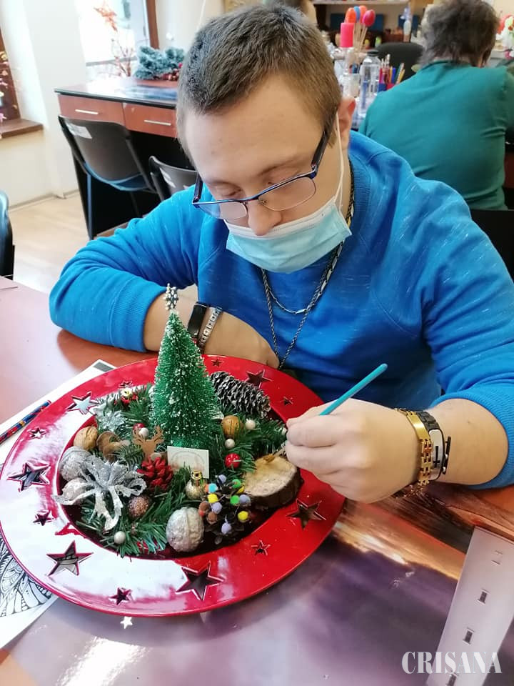 Mai sunt doar două săptămâni până la Crăciun, iar tinerii cu sindrom Down din Oradea se reunesc, în aceste zile, la Centrul de Zi Iedera, pentru a realiza, cu ocazia Sărbătorilor, coronițe, aranjamente și globuri frumos colorate.