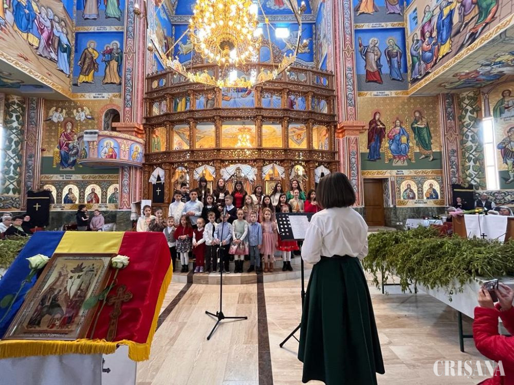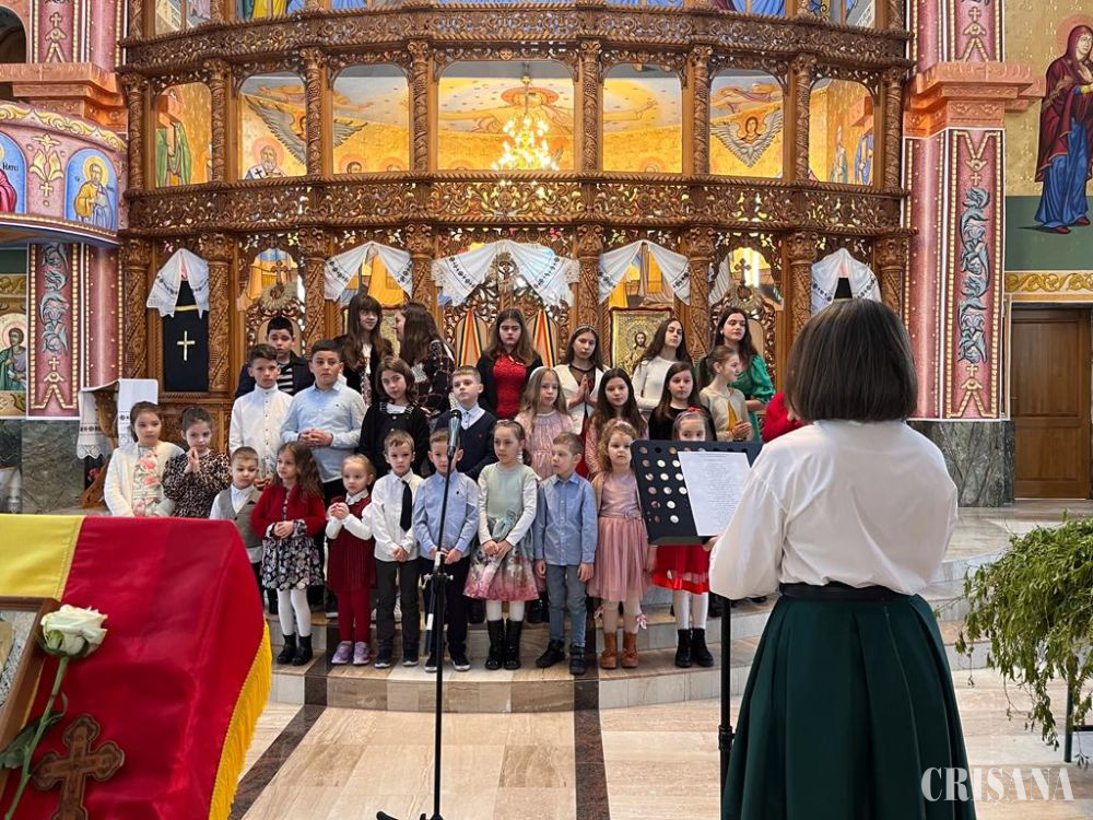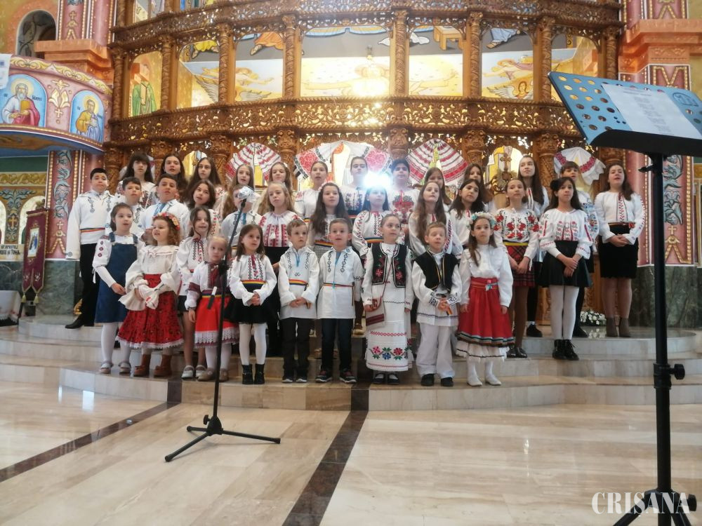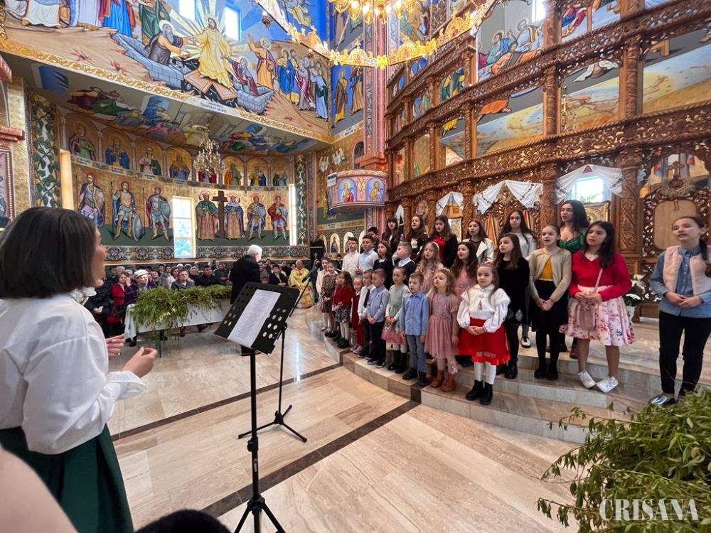 „Hristos a înviat din morţi/ Cu moartea pe moarte călcând/ Şi celor din morminte/ Viaţa dăruindu-le...”, au cântat, apoi, cei mai mici credincioși ai parohiei.