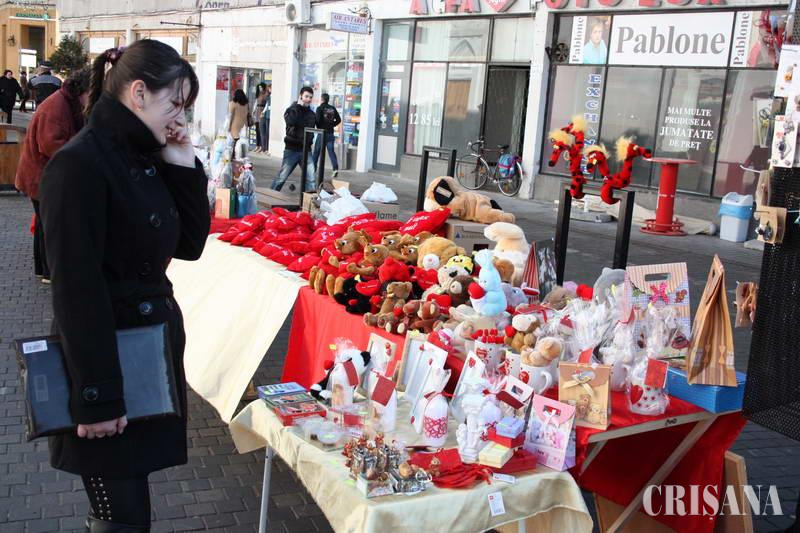 Zeci de inimioare, mai mici şi mai mari, jucării de pluş, căni, rame foto, bijuterii confecţionate manual, semne de carte, pandantive, brelocuri, coliere, precum şi alte produse specifice Zilei de Sfântul Valentin împânzesc deja tarabele de pe Corso. Chiar dacă mai sunt câteva zile până la sărbătoarea îndrăgostiţilor, micii comercianţi se declară mulţumiţi de vânzări, cele mai căutate produse fiind inimioarele cu nume, dar şi jucăriile din pluş.