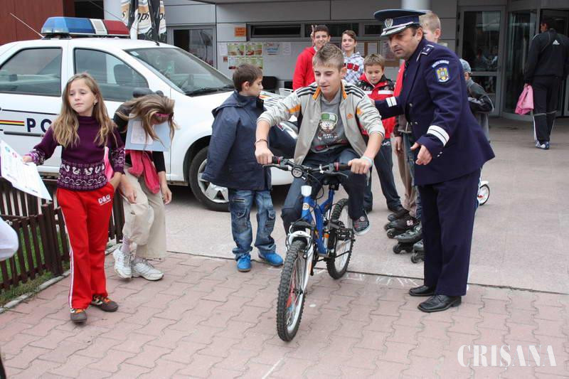 Ziua Siguranţei Rutiere a fost tematica activităţilor ce s-au desfăşurat ieri în cadrul Săptămânii Prevenirii Criminalităţii. "Siguranţa rutieră - o prioritate pentru poliţia bihoreană!" şi „Atenţie la pericolele străzii!" au fost activităţile organizate de poliţişti în Orăşelul Copiilor. Cu această ocazie, copiii prezenţi au învăţat cum să circule ca să îşi protejeze viaţa, şi au participat la un concurs de biciclete cu tematică rutieră. Întrecerea s-a adresat copiilor cu vârste între 8 - 15 ani şi a constat în parcurgerea unui traseu de îndemânare cu bicicleta în poligon şi o probă teoretică de verificare a cunoştinţelor privind normele rutiere. La final participanţii au primit diplome şi cărţi realizate de poliţiştii din cadrul Compartimentului de Analiză şi Prevenire a Criminalităţii. Tot ieri, actorii Teatrului de Stat pentru Copiii şi Tineret Arcadia au prezentat o scenetă cu tematică preventivă, urmată de un mesaj pentru cei prezenţi la manifestare, în sensul adoptării unei conduite preventive pe drumurile publice, la toleranţă şi respect reciproc în relaţiile cu colegii şi profesorii, precum şi la o atitudine non-violentă în cazul apariţiei unui conflict. De asemenea, a avut loc lansarea unui "chestionar virtual" pentru copii cu vârste cuprinse între 7 - 14 ani, care au dorit să îşi testeze cunoştinţele în materie de educaţie rutieră, chestionarul fiind realizat de poliţiştii de proximitate din cadrul Poliţiei municipiului Oradea.