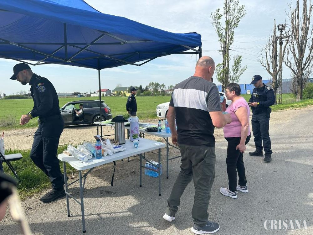 Polițiștii Serviciului Rutier împreună cu polițiștii Compartimentului de Analiză și Prevenire a Criminalității din cadrul Inspectoratului de Poliție Județean Bihor, alături de polițiști de frontieră din cadrul I.T.P.F. Oradea, au desfășurat, joi, o acțiune preventivă în trafic, pentru a preveni victimizarea cetățenilor prin accidente rutiere produse pe fondul oboselii la volan și pentru prevenirea victimizării prin diferite tipuri de infracțiuni, specifice perioadei sărbătorilor pascale. Astfel, polițiștii bihoreni au oprit în trafic autoturismele care au intrat în țară dinspre P.T.F. Borș, pe Șoseaua Borșului, înainte de intrarea în municipiul Oradea și i-au servit pe conducătorii auto și pe pasagerii acestora cu cafea și apă, oferindu-le astfel prilejul de a se revigora, înainte de a-și continua călătoria. Totodată, polițiștii de prevenire bihoreni au discutat cu conducătorii auto și cu pasagerii autovehiculelor oprite despre măsurile de siguranță pe care trebuie să le aibă în vedere atunci când pornesc la drum, pentru a preveni furturile din locuințe, din autoturisme, înșelăciunile, le-au transmis să își protejeze bunurile personale, să nu le lase nesupravegheate în autoturisme, să aibă grijă la cunoștințele ocazionale, pentru a nu fi victimizați. Polițiștii bihoreni le-au oferit conducătorilor auto recomandări preventive utile cu privire la conducerea pe timp de noapte și conducerea preventivă, pentru a preveni implicarea acestora în accidente rutiere. În ce privește prevenirea victimizării prin accidente rutiere, polițiștii rutieri și de prevenire bihoreni au vizat, în cadrul acțiunii preventive, în principal, conducătorii auto care au condus mii de kilometri pentru a ajunge în țară în perioada premergătoare sfintelor sărbători de Paști, categorie expusă victimizării prin accidente rutiere produse pe fondul oboselii la volan. De asemenea, au fost oferite recomandări pentru prevenirea accidentelor rutiere produse pe fondul conducerii sub influența alcoolului sau a substanțelor psihoactive. În perioada în perioada următoare, polițiștii din Bihor vor fi la datorie, pentru ca întreaga comunitate să se bucure în linişte și siguranță de Sfintele Sărbători de Paști. Peste 900 de poliţişti și peste 110 patrule de siguranţă publică vor fi în stradă și vor avea ca prioritate prevenirea evenimentelor neplăcute și protejarea drepturilor și libertăților cetățenilor. Polițiștii rutieri și de ordine publică bihoreni vor acţiona pe întreaga reţea de drumuri din județul Bihor, în vederea fluidizării circulaţiei şi prevenirii evenimentelor rutiere, precum şi pentru depistarea celor care conduc cu viteză, sub influenţa băuturilor alcoolice sau a substanțelor psihoactive.