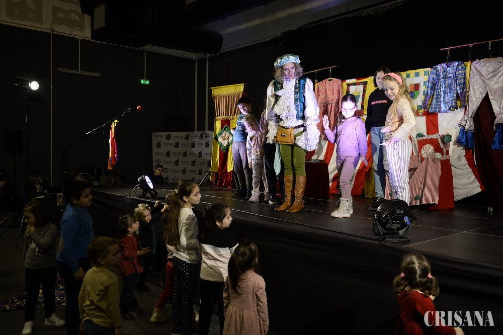 Zeci de copii, de diferite vârste, însoțiți de părinți sau bunici, au participat sâmbătă, 12 martie, în sala de evenimente de la Era Park Oradea, la spectacolul „Hainele cele noi ale Împăratului”, adaptare scenică Michelle Art, după cunoscuta poveste a lui Hans-Christian Andersen.