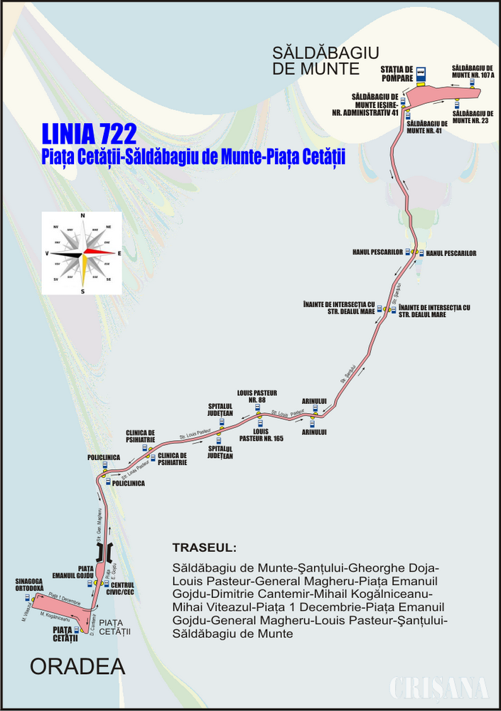 Autobuzele de pe linia 722 vor pleca în cursă din staţia Piaţa Cetăţii, în zilele lucrătoare cu şcoală sau vacanţă, la orele 4.35, 6.35, 12.35, 15.05, 16.35, 20.00, iar sâmbăta (cu excepţia zilelor de sâmbătă cu sărbătoare legală), la orele 6.00, 15.00, 19.25. Pe linia 722 nu se execută curse duminica şi în zilele cu sărbătoare legală. Graficele de circulaţie vor fi afişate în fiecare staţie de pe traseu.
