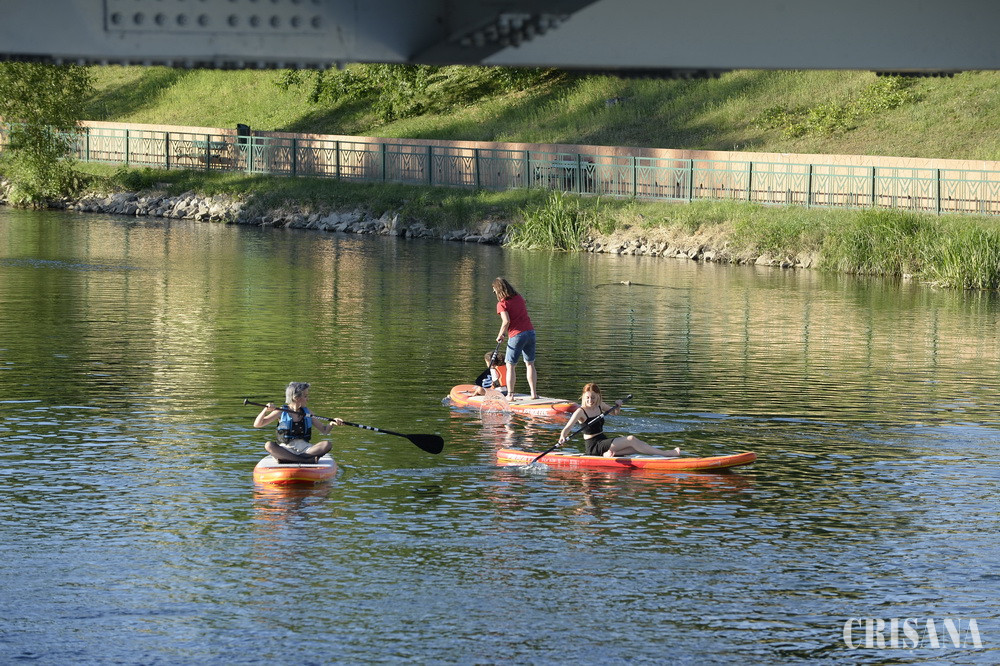 Sâmbătă, în prima zi a evenimentului „Criș Delivery”, pe lângă plimbări cu bărci gonglabile pe Crişul Repede, îndrumaţi de instructorii de la Sup Academy din Bucureşti, orădenii au încercat şi Stand-Up Paddle, văslind pe râu în timp ce stăteau în picioare, pe plăci speciale.