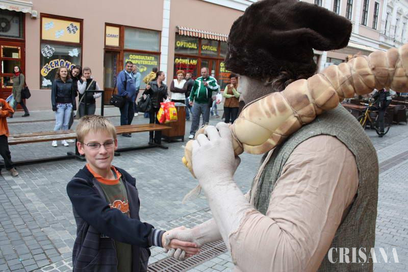 Cei şase actori care au dat viaţă personajelor sunt: Alexandru Verzescu (Povestitorul), Laurenţiu Vlad (Primul dac - Dacul Decegol), Alexandra Roatiş (Scufiţa Roşie), Miki Paicu (Primul român - Ciobanul Ion Mioară), Alexandra Ceaca (Romaniţa pitorească) şi Georgian Cimpoeru (Contele Dracula). Orădenii s-au adunat ca la urs să vadă statuile şi să le cunoască povestea. "Este prima oară când evoluăm la Oradea. Am fost două luni pe litoral, unde mergem de trei ani consecutiv. Anul trecut am participat şi la Festivalul din Edinburgh, Scoţia", ne-a mărturisit Alexandru Verzescu. Actorii şi-au propus să antreneze publicul în povestea teatrală, transformându-l în parte activă a spectacolului, dezvoltând astfel comunicarea actor-spectator, spectator-actor. Orădenii s-au adunat ca la urs să admire statuile vivante. Puţini dintre ei ştiau însă ce se întâmplă. Unii au intrat repede în jocul actorilor, alţii, mai puţin. "Este un spectacol foarte interesant, însă spectatorii trebuie să fie deschişi la minte pentru a înţelege acest gen de teatru şi a interacţiona cu actorii", ne-a mărturisit tânăra orădeancă Alexandra Perghe.