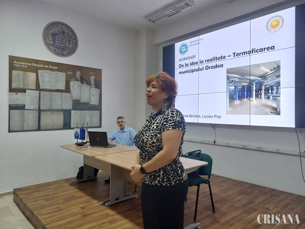 Cadru didactic la Departamentul de Inginerie Energetică, Codruța Bendea a subliniat că sistemele de furnizare centralizată a energiei sunt tot mai atractive pentru state dezvoltate din vestul Europei, pentru că sunt eficiente și mai puțin poluante. Gazda evenimentului a subliniat că provocările puse în fața sistemului local de termoficare au fost: eficientizarea energetică, reducerea consumului, reducerea pierderilor și retehnologizarea. Codruța Bendea a mărturisit că, după ce a analizat critic toate opțiunile pe care le avea pentru a beneficia de încălzire și apă caldă, a ajuns la concluzia că sistemul urban de termoficare reprezintă cea mai bună alegere. „Peste 80% din populația orașului beneficiază de rețeaua de termoficare”, a adăugat Bendea. Universitarul orădean a vorbit și despre utilizarea apei geotermale în încălzirea locuințelor orădenilor. „Un sistem inovativ care prezintă avantaje tehnice, economice, de protecția mediului și sociale”, a mai spus Bendea.