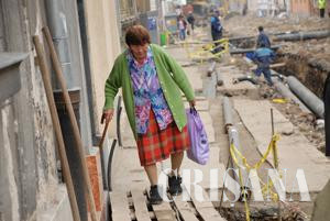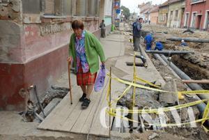 Strada Iuliu Maniu pare să se fi transformat într-un şantier permanent, răbdarea riveranilor fiind greu pusă la încercare. După ce zile în şir au fost privaţi de apă, după ce de trei luni firmele care îşi au aici sediul au fost nevoite să-şi închidă afacerile, după ce apele le-au invadat curţile şi subsolurile, iar mirosurile pestilenţiale ale canalizării sparte le-au invadat strada, acum riveranii abia mai pot ieşi din case. "Nu mai putem să ieşim pe stradă. În dreptul fiecărei case s-au săpat şanţuri peste care angajaţii firmei care introduc conductele de termoficare au montat două scânduri. Pentru cei mai în vârstă, fără echilibru sau pentru părinţii care trebuie să-şi poarte copii în braţe, traversarea acestor 'punţi' improvizate este o adevărată aventură. Eu sunt femeie în vârstă şi am şi o deficienţă la picior. E greu să treci pe două scânduri şubrede fără să te poţi ţine de ceva. I-am tot rugat să aducă nişte punţi mai rezistente", ne-a declarat Maria Gherghei.