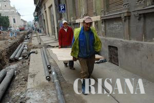 Dintre cele trei tronsoane în care s-a împărţit strada, doar pe primul, cuprins între Decebal şi I.L. Caragiale, s-a încheiat lucrările de introducere a reţelelor. Aici, de câteva zile, firma Drumuri Orăşeneşti a început montarea bordurilor, însă s-a oprit la 20 de metri de Caragiale, pentru că încă nu au fost realizate toate racordurile. Aici va urma să fie montat un strat de geocelule (asemănător cu un fagure de miere), care va fi umplut săptămâna viitoare cu balast, iar în două săptămâni se va ajunge la stratul de stabilizat. În ce priveşte cel de-al treilea tronson, Jean Calvin - Piaţa Unirii, în cel mai fericit caz abia peste o lună se va închide şantierul şi strada va fi redată circulaţiei. Pe acest tronson, lucrările de introducere a conductelor de termoficare încă nu s-au finalizat.