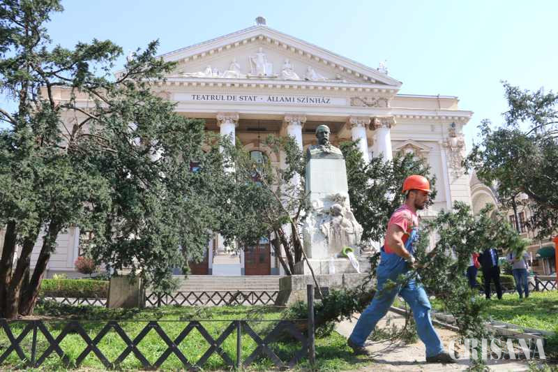 Tisele din faţa Teatrului de Stat Oradea au fost toaletate, joi dimineaţa, măsură luată înaintea relocării lor în Parcul 1 Decembrie. Mutarea arborilor va avea loc în cursul acestei luni, după ce, în cursul lunii martie, Agenţia pentru Protecţia Mediului Bihor a avizat proiectul privind reabilitarea Pieţei Ferdinand.