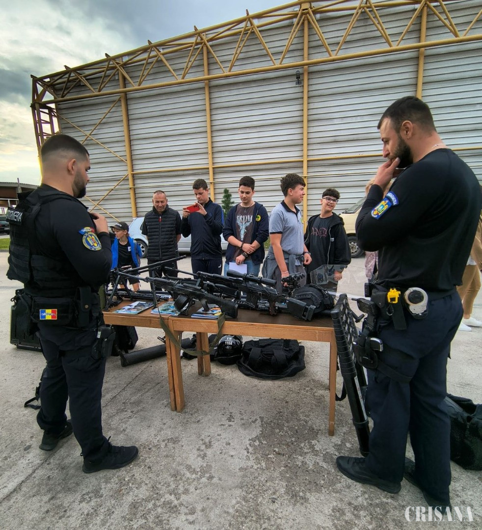 La standul lor reprezentanții Jandarmeriei Române i-au uimit pe tineri cu „armamentul din dotare” și cu multe alte obiecte pe care le folosesc atunci când trebuie să reinstaureze ordinea publică: scuturi, căști, aparate cu termoviziune...