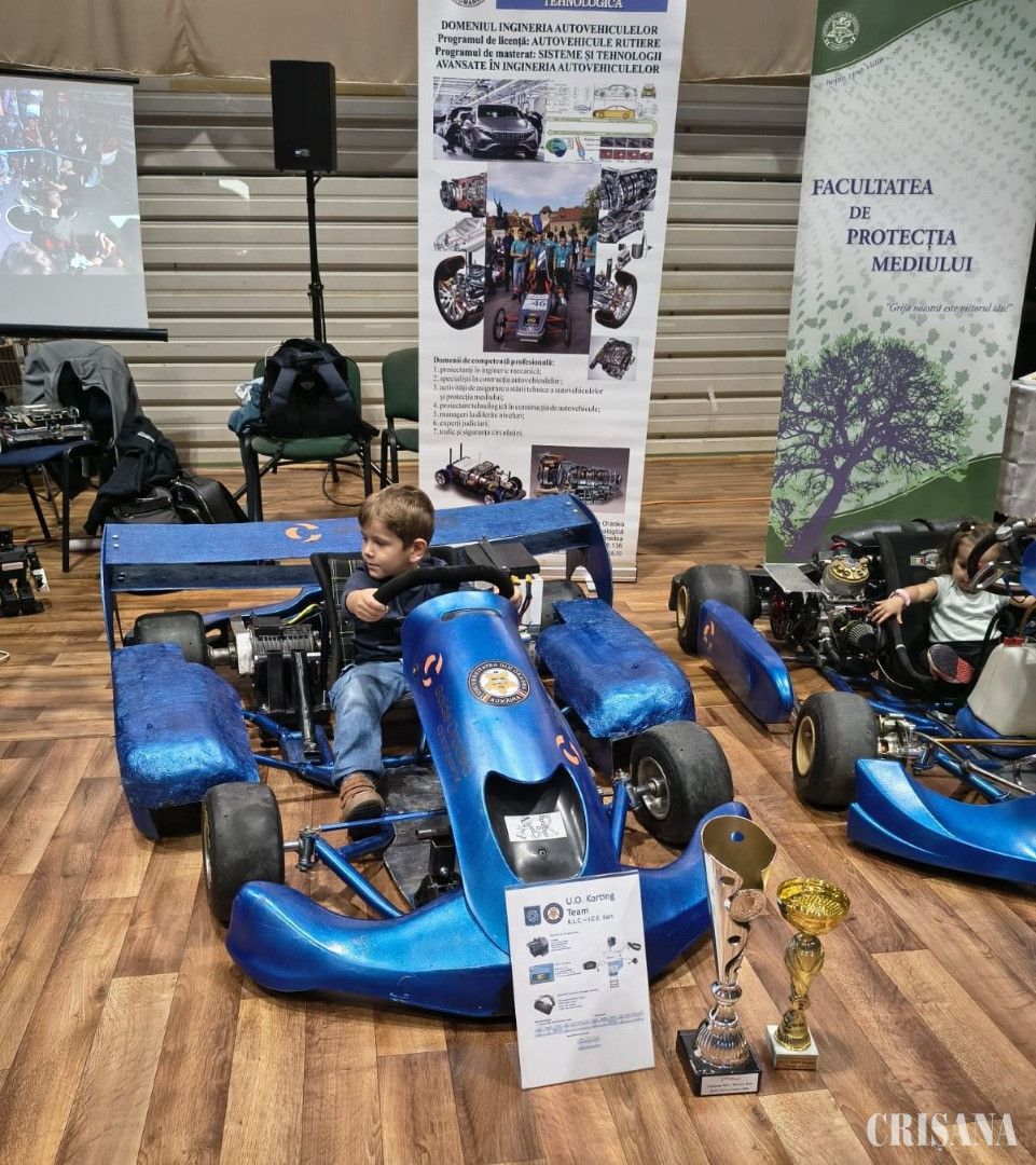 De la „Noaptea Cercetătorilor Europeni” n-au lipsit nici carturile studenților orădeni. Mașinile, premiate la competiții naționale de profil au făcut deliciul viitorilor șoferi. Tot despre conducătorii auto a zilei de mâine a fost vorba și la standul Poliției Rutiere. Cei curioși au avut ocazia să evolueze pe un simulator, să urmărească scurte documentare despre cum trebuie să se comporte în calitate de pietoni ori să constate, pe propria piele, efectele nefaste ale consumului de alcool sau stupefiante.