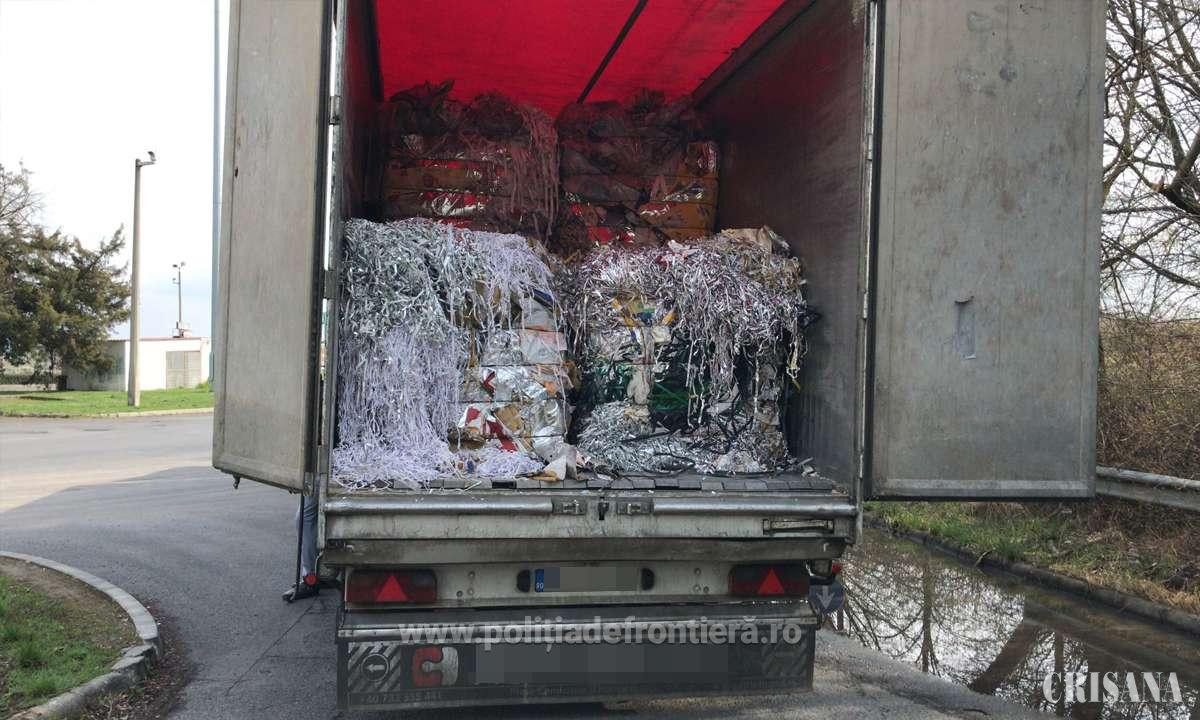 Poliţiştii de frontieră bihoreni împreună cu lucrători din cadrul Gărzii Naţionale de Mediu nu au permis intrarea în România a unui ansamblu format din cap tractor și semiremorcă, încărcate cu peste 22.900 kilograme de deșeuri care constau în hârtie, pentru care şoferul nu deţinea documentaţia necesară pentru transferul de deşeuri.