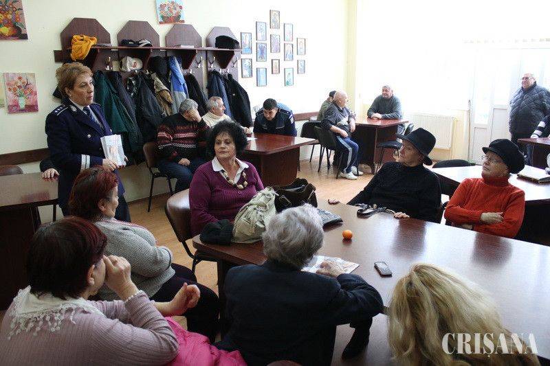 Persoanele care frecventează Centrul social multifuncțional pentru persoane vârstnice din Cartierul Ioșia au participat, ieri, la o discuție interactivă, pe tema violenței domestice, moderată de poliţiştii de la Prevenire - Ioana Indrieş şi Flaviu Iova. Evenimentul s-a desfășurat în cadrul proiectului „Cetățeni activi la puterea a treia”.