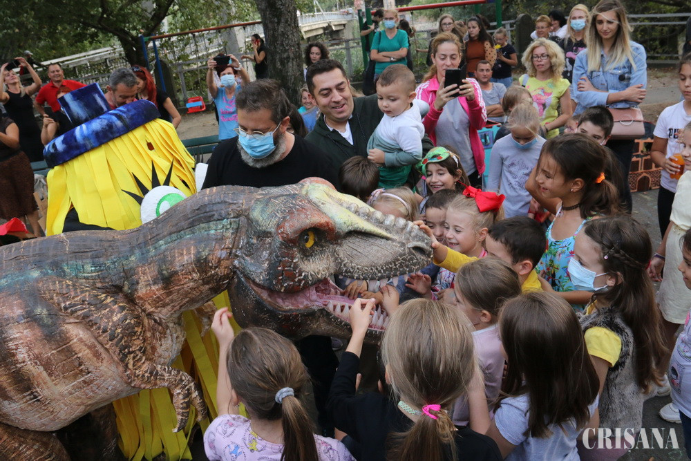 După cele două săptămâni de workshop-uri, vineri, în Parcul Libertății, a fost inaugurat Orășelul de hârtie, cu blocuri de înălțimi diferite, pictate și desenate de copii. La inaugurare a fost prezent și un dinozaur de peste patru metri lungime, destul de năzdrăvan și greu de strunit. Dinozaurul a învățat, alături de spectatori, care sunt bunele maniere la teatru, însă Dino va mai avea și alte lecții de bune maniere de învățat și-și va da întâlnire cu copiii weekend de weekend, în parc, în următoarele săptămâni.