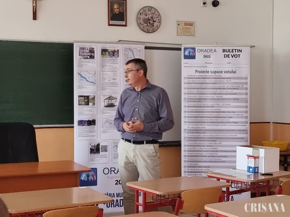 „Proiectele propuse se regăsesc pe buletinul de vot, în ordinea numărului de voturi care au fost obținute în etapa de vot online, și ele vor fi adunate cu voturile care se vor înregistra în etapa aceasta, din cadrul adunărilor publice. Pot vota nu doar cei care au domiciliul, flotantul sau rezidența în Oradea, ci și cei care lucrează sau învață în oraș. Am redus, de asemenea, vârsta celor care votează, de la 18 la 16 ani, considerând că cei care votează au un interes legat de spațiul public și de lucrurile care pot fi îmbunătățite în oraș. Sunt 38 de proiecte, toate pe un singur buletin, nu mai sunt împărțite pe categorii, iar atunci, ca votul să fie valid, trebuie votat un singur proiect, cel care vă este cel mai aproape de suflet. În alți ani, s-a votat pe domenii și ne-am dat seama că exista un dezechilibru, întrucât, spre exemplu la capitolul digitalizare existau poate 1-2 proiecte, iar la spații verzi 10-20, care ulterior intrau în competiție”, a precizat șeful Direcției Economice, Eduard Florea.