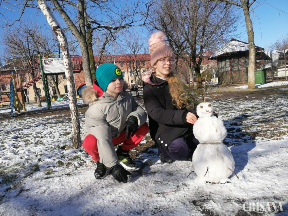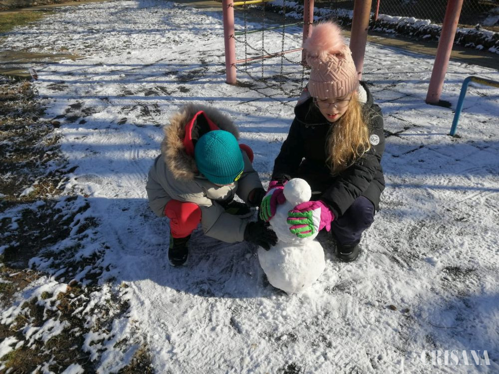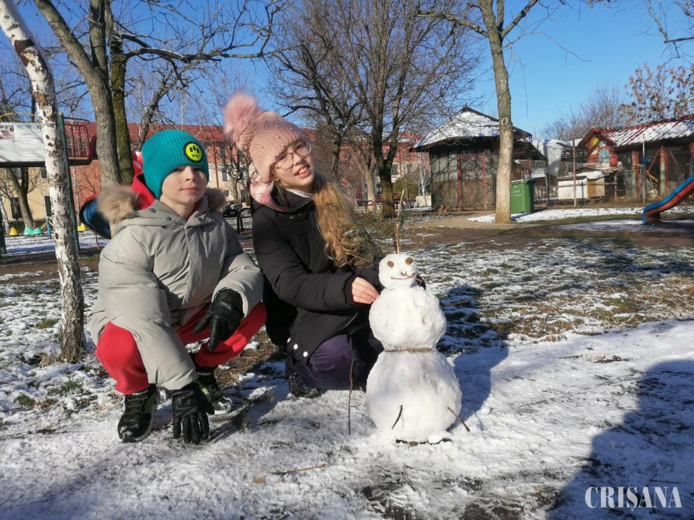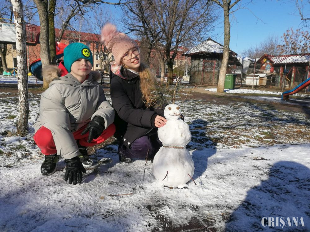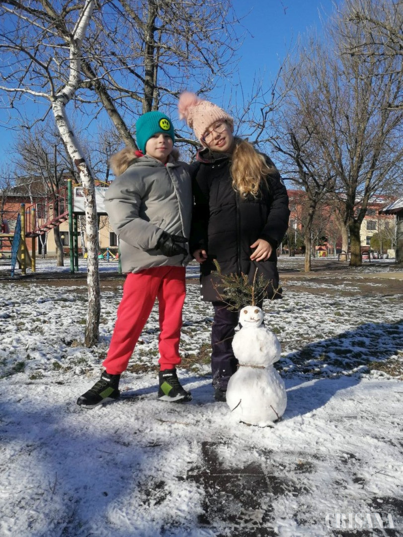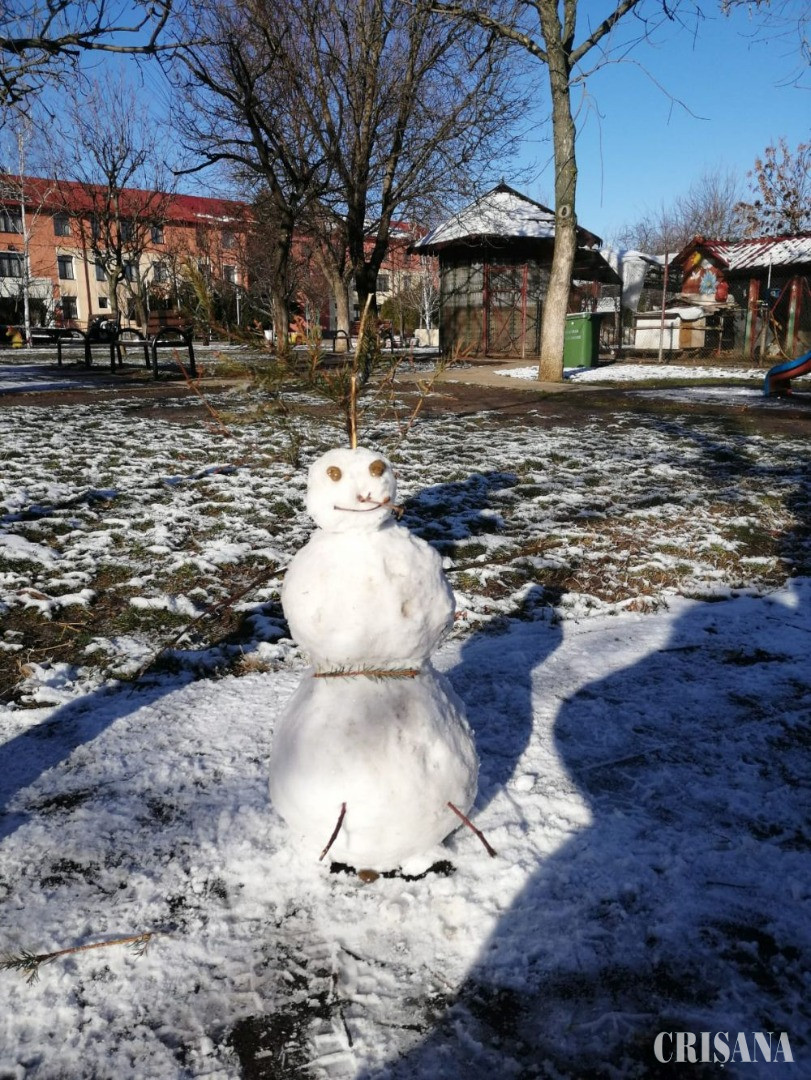 În parcul Liceului Don Orione din Oradea, „omuleții” au răsărit parcă din pământ, modelați de mâinile dibace ale micilor artiști. Sub soarele prietenos, zăpada s-a adunat mai repede, iar prieteniile între copii s-au legat ușor. De ani de zile, Teodora, în vârstă de zece ani, și Casian, de opt anișori, fac omuleți de zăpadă în parc, atunci când au bucuria să ningă peste oraș. Cei doi se înțeleg perfect, în special atunci când își propun să creeze ceva frumos împreună. Așadar, sâmbătă, copiii nu au părăsit parcul școlii până nu și-au definitivat lucrările, cu bucurie în suflet și bujori în obrăjori. Atmosfera a fost la fel de albă în tot orașul, chiar dacă nu la fel de veselă și pentru șoferi, care au fost nevoiți să fie mai atenți atunci când au ieșit în trafic.