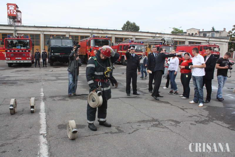 Jurnaliştii orădeni au fost invitaţi, ieri, de reprezentanţii Inspectoratului pentru Situaţii de Urgenţă „Crişana" al judeţului Bihor să participe la trei probe sportive specifice pompierilor. Astfel, ziariştii au avut de îmbrăcat o parte din echipamentul pompierilor, au încercat să lanseze furtunul printre jaloane şi, nu în ultimul rând, să ţintească cu furtunul cu apă.