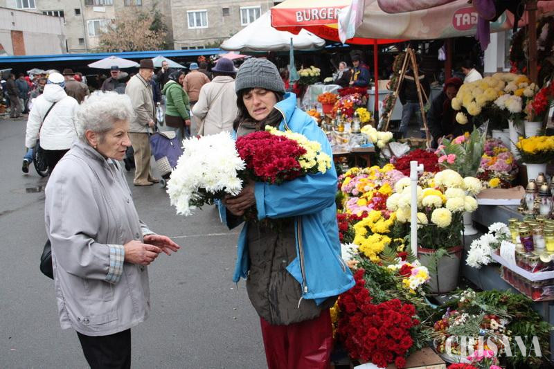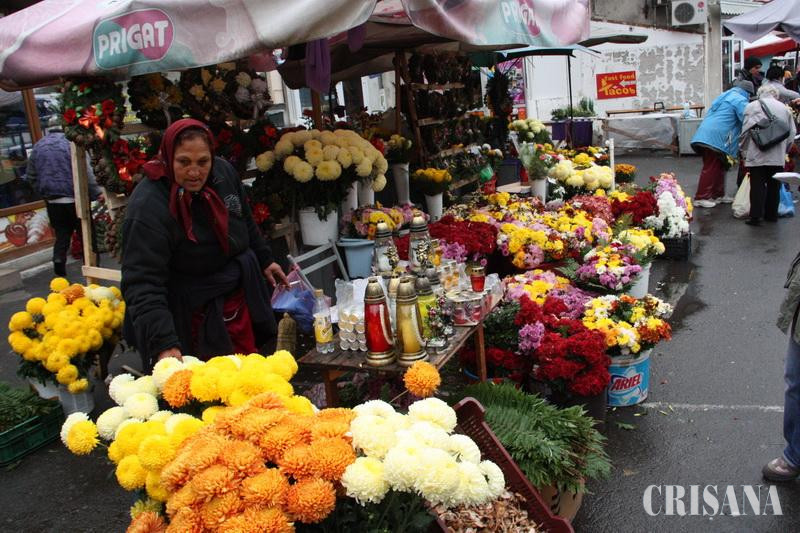 Marcată pe 1 noiembrie, Ziua Morţilor este un vechi obicei catolic preluat şi de românii din Crişana, Ardeal, Banat şi Maramureş. În preajma Luminaţiilor, aparţinătorii celor decedaţi primenesc mormintele, iar pe 1 noiembrie revin la căpătâiul celor dragi pentru a le aduce o lumânare şi flori proaspete. În aceste zile, florarii au umplut tarabele din pieţe, oferta fiind variată. Crizantele galbene, albe, roşii, mov, portocalii au umplut de culoare alei întregi din Piaţa Cetate. Preţurile la florile de sezon sunt de la 2 la 5 lei, ele concurând cu buchetele de crizanteme care şi ele ajungeau până la maximum 8 lei. Vremea rea i-a ţinut, însă, pe orădeni departe de cumpărături, mai toţi florarii plângându-se că ieri, până la orele prânzului, nu au vândut nimic. "Duminică am vândut flori de 10 lei, azi nimic. Ploaia pare să-i ţină pe orădeni departe de cumpărăuri", ne-a declarat Varkusc Ilona, care pe lângă crizanteme a scos la vânzare ghivece cu patru plante, care costau 20 de lei. De asemenea, pentru Ziua Morţilor a pregătit aranjamente din conuri de brad şi flori uscate, ale căror preţuri sunt între 15 şi 20 de lei. Coroanele clasice se vindeu cu 5 lei, 7 lei, 10 lei. "Sunt mai ieftine decât anul trecut. Ca anul ăsta nu am avut preţuri niciodată", s-a plâns unul dintre comercianţi. Coroaneşe din plastic, mult mai rezistente, erau în număr mai mic, iar preţul lor pornea de la 6,5 lei/bucata. "Noi am venit din Rogerius să facem în Piaţa Cetate cumpărăturile. Preţurile sunt mult mai bune. Am cumpărat coroane şi ghivece cu flori. Le vom duce într-un localitate din judeţul Satul Mare acolo unde sunt înmormântaţi părinţii", ne-a declarat Ana Pecherle.