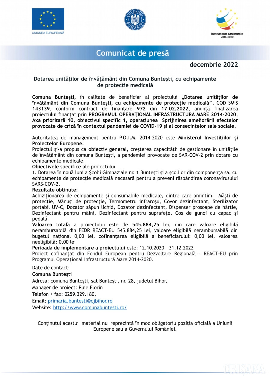 Comunicat de presă 14 Decembrie 2022 188 1 0 Advertorial Comentarii Nu există nici un comentariu. Adaugă opinia ta Poţi adăuga un comentariu completând formularul de mai jos. Decizia de publicare a opiniilor dvs. ne aparţine în întregime. Responsabilitatea juridică pentru conţinutul comentariilor dvs. va revine în exclusivitate. Nume * Subiect * Comentariu