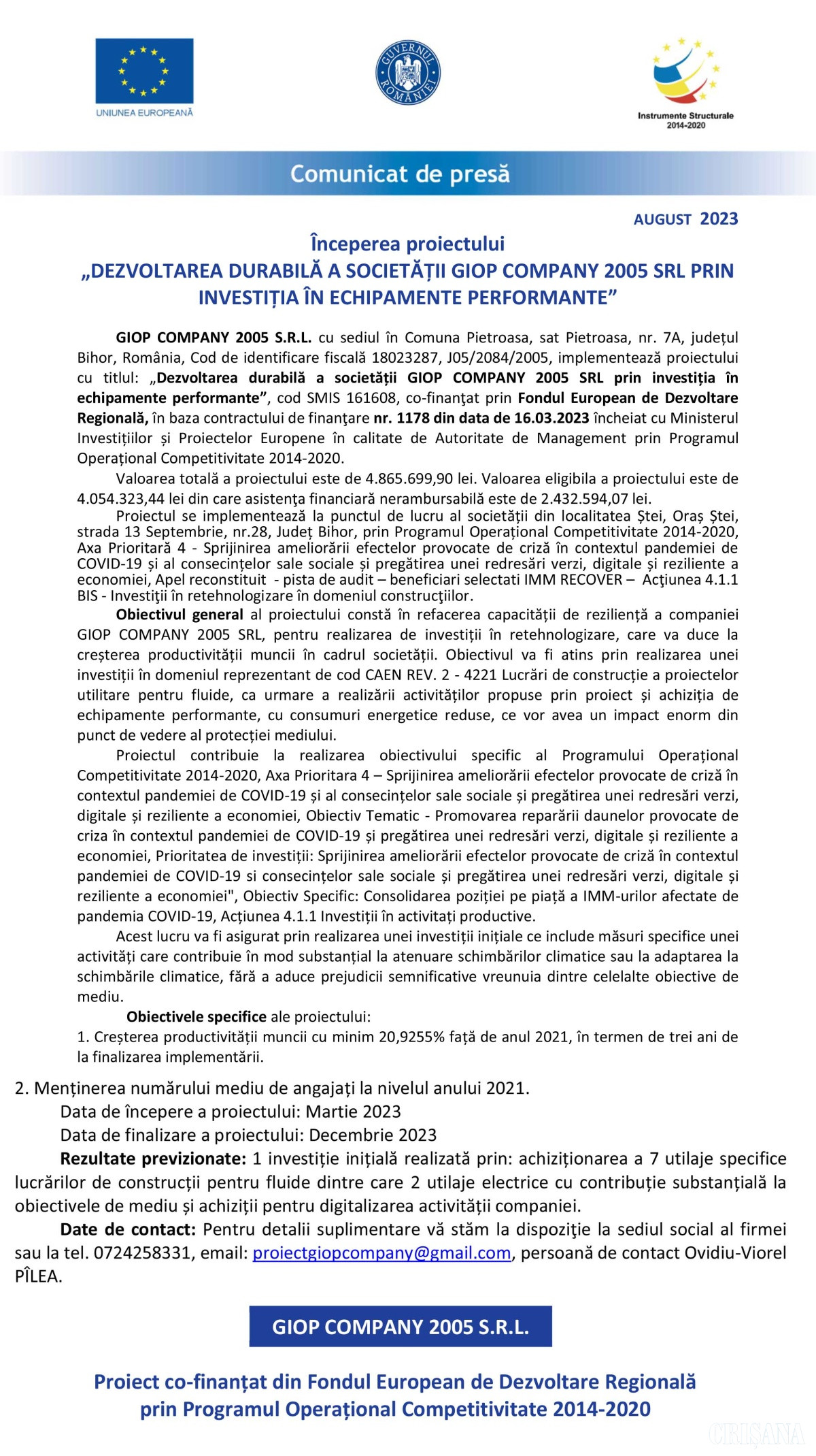 Comunicat de presă 17 August 2023 236 1 0 Advertorial Comentarii Nu există nici un comentariu. Adaugă opinia ta Poţi adăuga un comentariu completând formularul de mai jos. Decizia de publicare a opiniilor dvs. ne aparţine în întregime. Responsabilitatea juridică pentru conţinutul comentariilor dvs. va revine în exclusivitate. Nume * Subiect * Comentariu