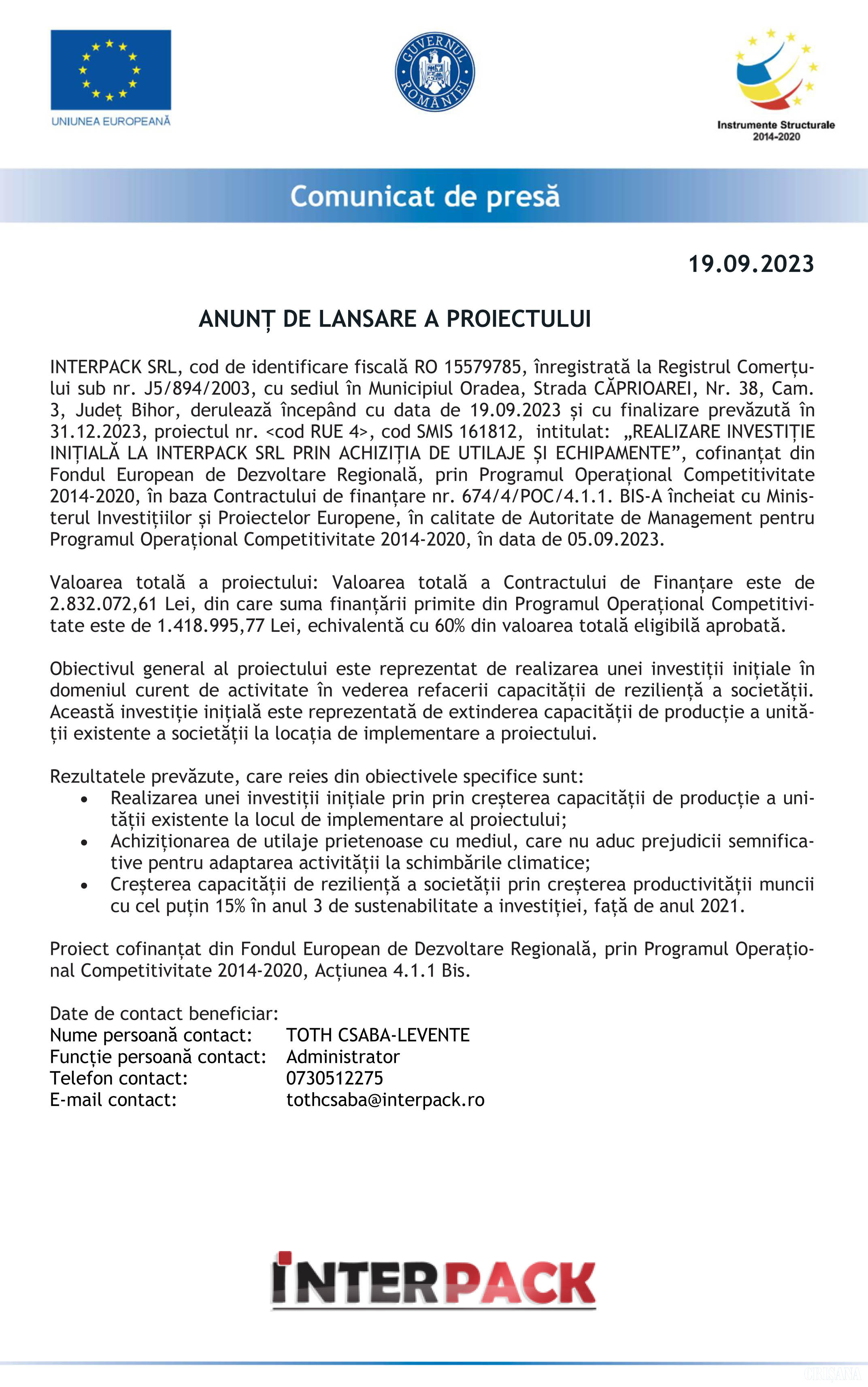 Comunicat de presă 20 Septembrie 2023 217 1 0 Advertorial Comentarii Nu există nici un comentariu. Adaugă opinia ta Poţi adăuga un comentariu completând formularul de mai jos. Decizia de publicare a opiniilor dvs. ne aparţine în întregime. Responsabilitatea juridică pentru conţinutul comentariilor dvs. va revine în exclusivitate. Nume * Subiect * Comentariu