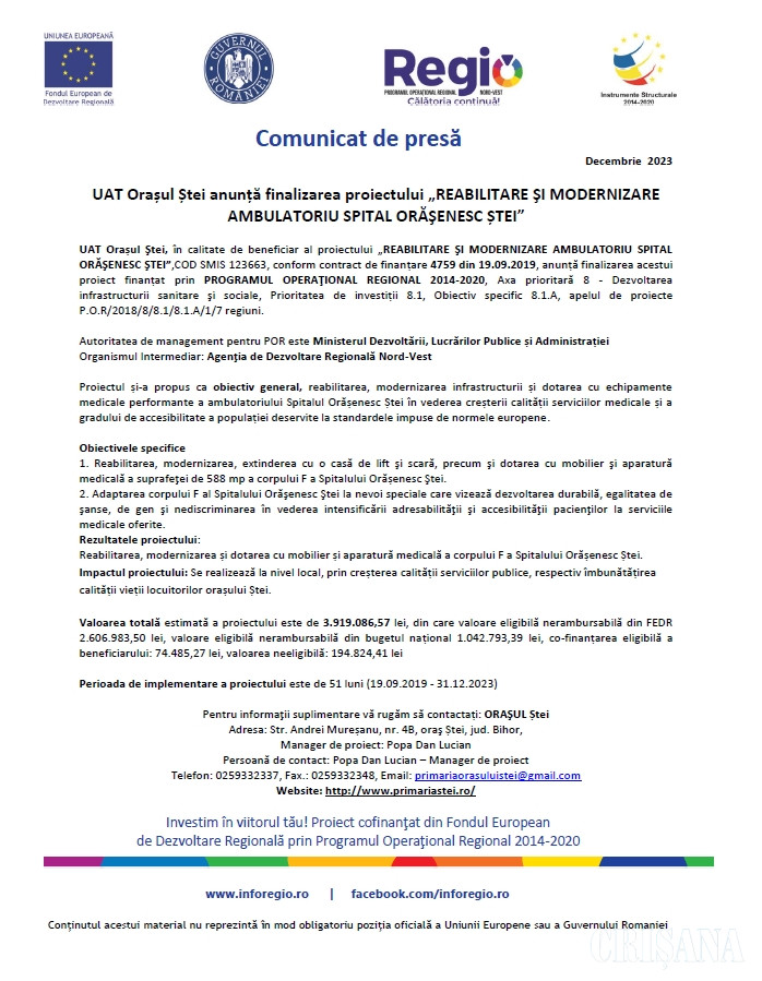 Comunicat de presă 14 Decembrie 2023 176 1 0 Advertorial Comentarii Nu există nici un comentariu. Adaugă opinia ta Poţi adăuga un comentariu completând formularul de mai jos. Decizia de publicare a opiniilor dvs. ne aparţine în întregime. Responsabilitatea juridică pentru conţinutul comentariilor dvs. va revine în exclusivitate. Nume * Subiect * Comentariu