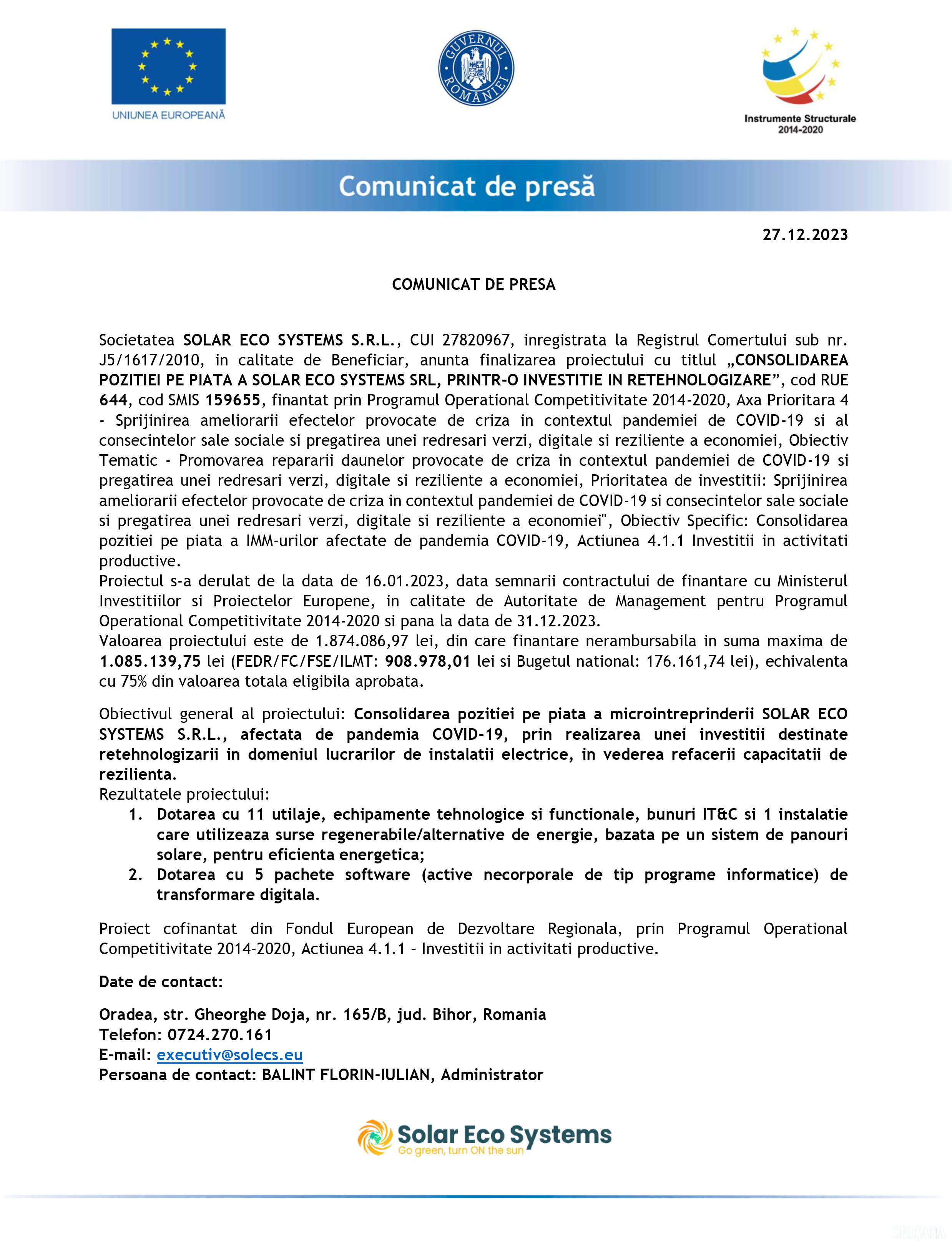 Comunicat de presă 26 Decembrie 2023 244 1 0 Advertorial Comentarii Nu există nici un comentariu. Adaugă opinia ta Poţi adăuga un comentariu completând formularul de mai jos. Decizia de publicare a opiniilor dvs. ne aparţine în întregime. Responsabilitatea juridică pentru conţinutul comentariilor dvs. va revine în exclusivitate. Nume * Subiect * Comentariu