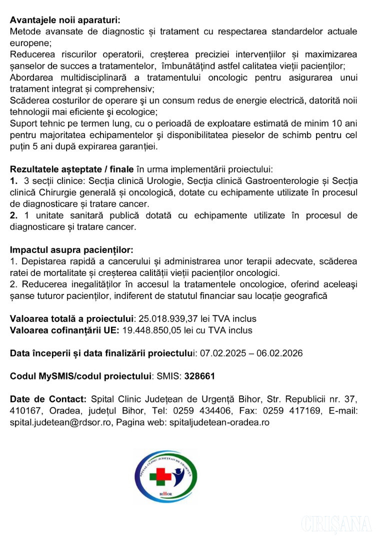 Comunicat de presă al Spitalului Clinic Județean de Urgență Bihor 03 Octombrie 2025 143 2 0 Advertorial