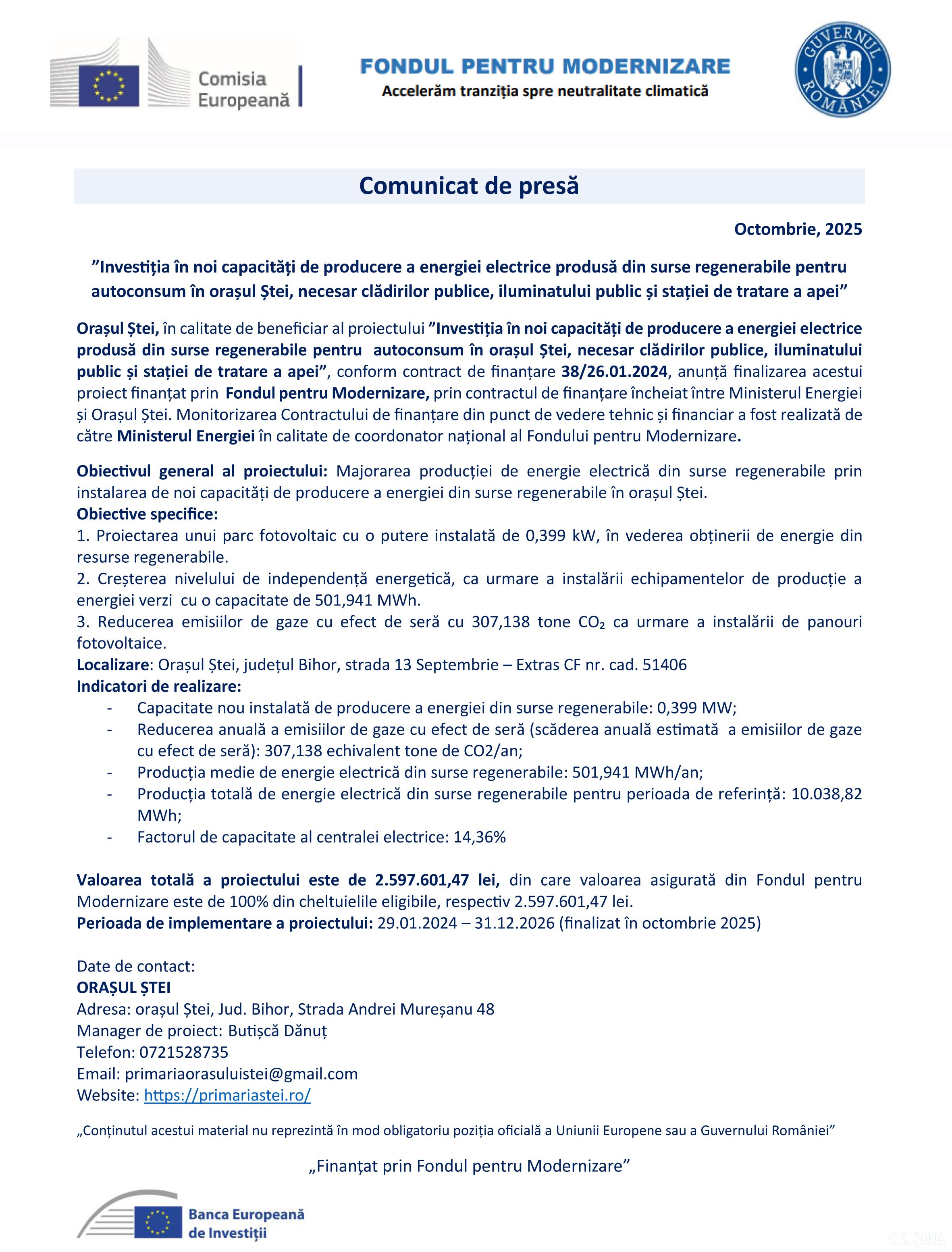 Comunicat de presă al UAT Ștei 10 Octombrie 2025 84 1 0 Advertorial Comentarii Nu există nici un comentariu. Adaugă opinia ta Poţi adăuga un comentariu completând formularul de mai jos. Decizia de publicare a opiniilor dvs. ne aparţine în întregime. Responsabilitatea juridică pentru conţinutul comentariilor dvs. va revine în exclusivitate. Nume * Subiect * Comentariu