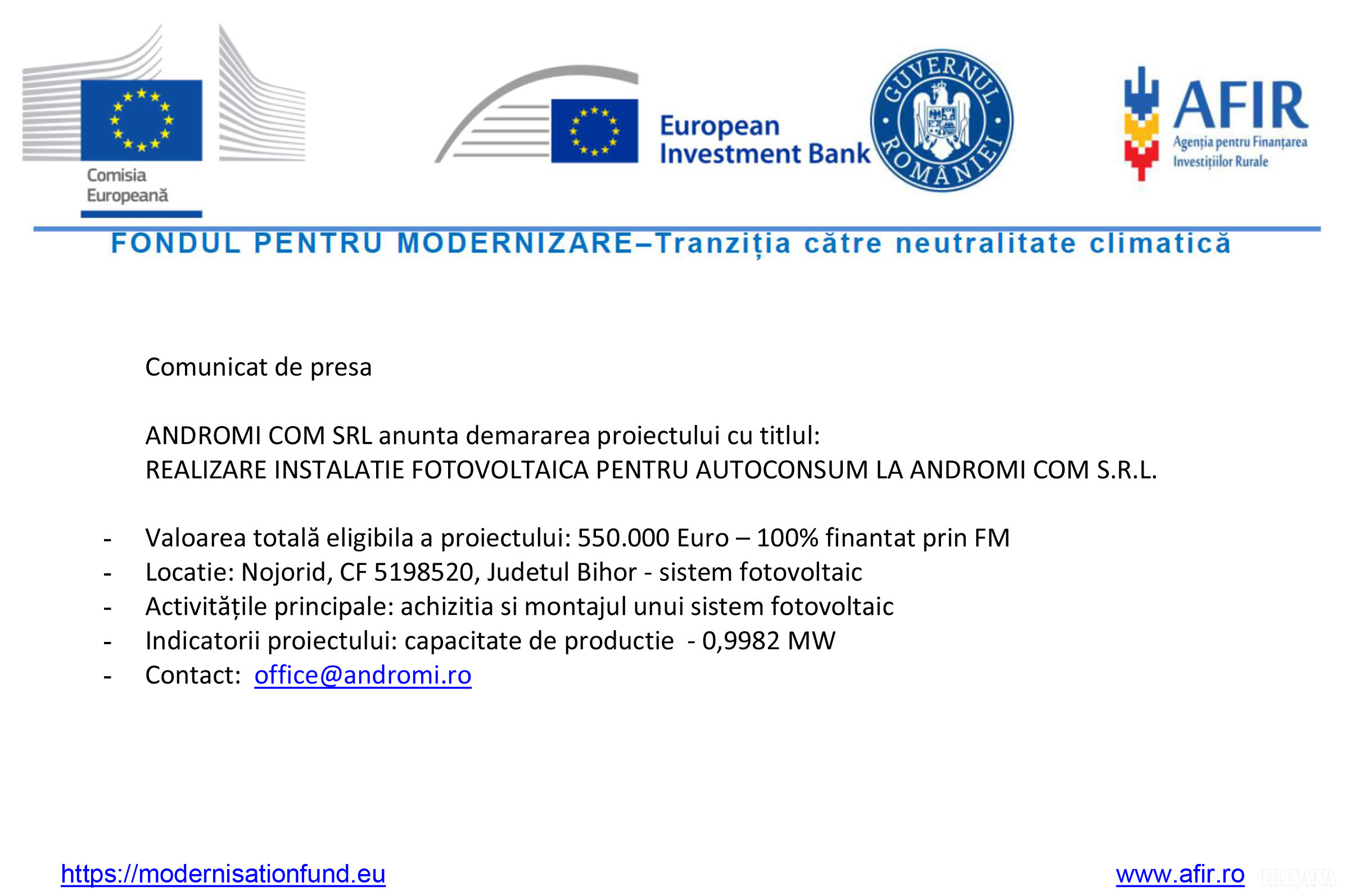 Comunicat de presă Andromi Com 23 Ianuarie 2025 190 1 0 Advertorial Comentarii Nu există nici un comentariu. Adaugă opinia ta Poţi adăuga un comentariu completând formularul de mai jos. Decizia de publicare a opiniilor dvs. ne aparţine în întregime. Responsabilitatea juridică pentru conţinutul comentariilor dvs. va revine în exclusivitate. Nume * Subiect * Comentariu