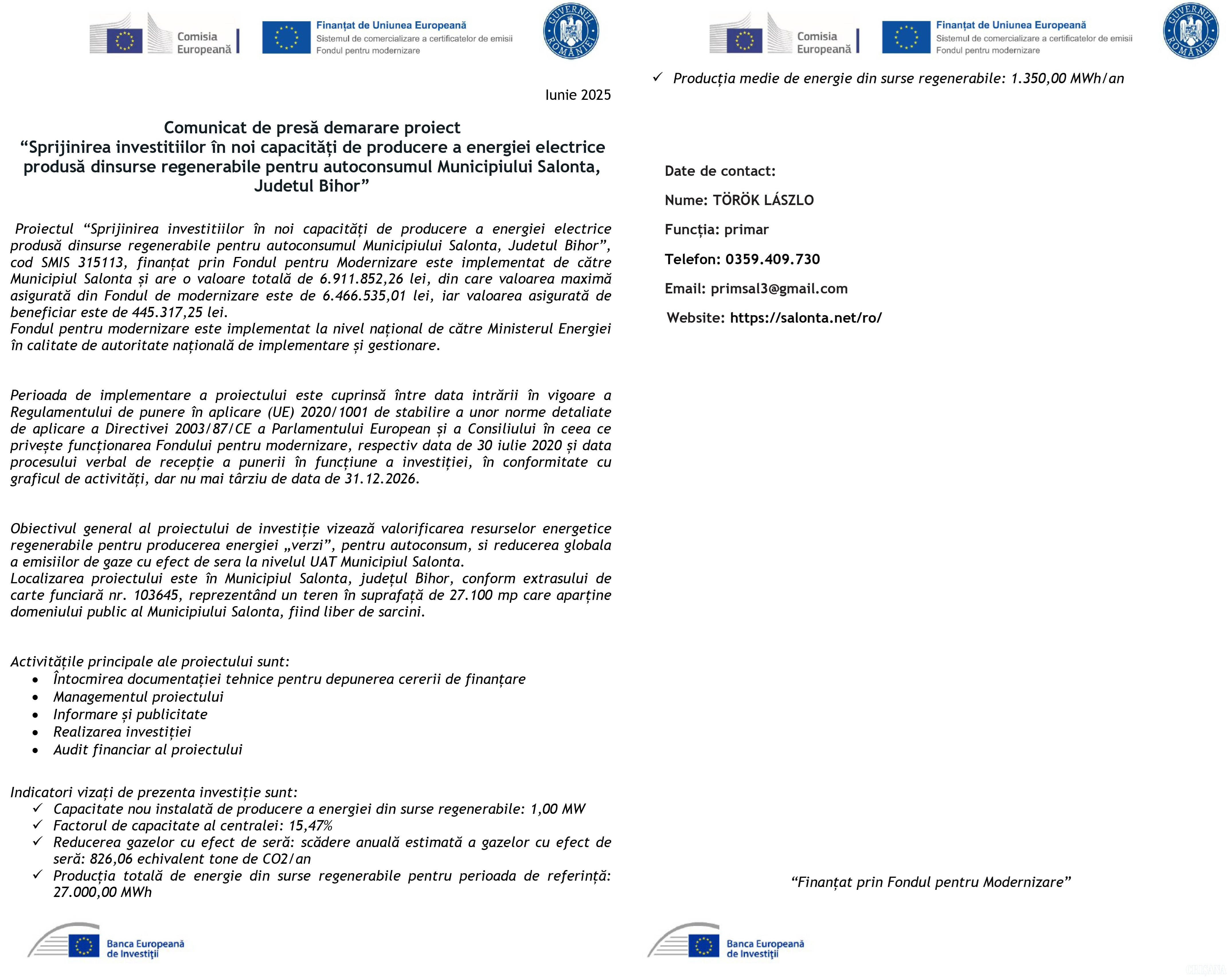 Comunicat de presă - demarare proiect în municipiul Salonta 16 Iunie 2025 134 1 0 Advertorial Comentarii Nu există nici un comentariu. Adaugă opinia ta Poţi adăuga un comentariu completând formularul de mai jos. Decizia de publicare a opiniilor dvs. ne aparţine în întregime. Responsabilitatea juridică pentru conţinutul comentariilor dvs. va revine în exclusivitate. Nume * Subiect * Comentariu