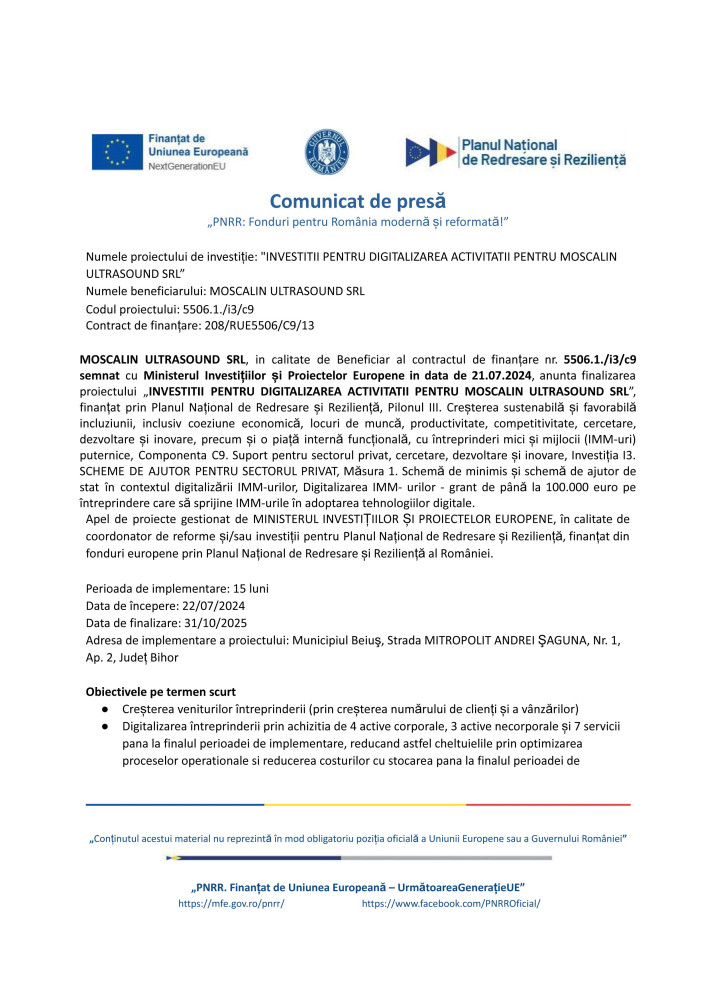 Comunicat de presă din partea Moscalin Ultrasound 31 Octombrie 2025 119 2 0 Advertorial Comentarii Nu există nici un comentariu. Adaugă opinia ta Poţi adăuga un comentariu completând formularul de mai jos. Decizia de publicare a opiniilor dvs. ne aparţine în întregime. Responsabilitatea juridică pentru conţinutul comentariilor dvs. va revine în exclusivitate. Nume * Subiect * Comentariu