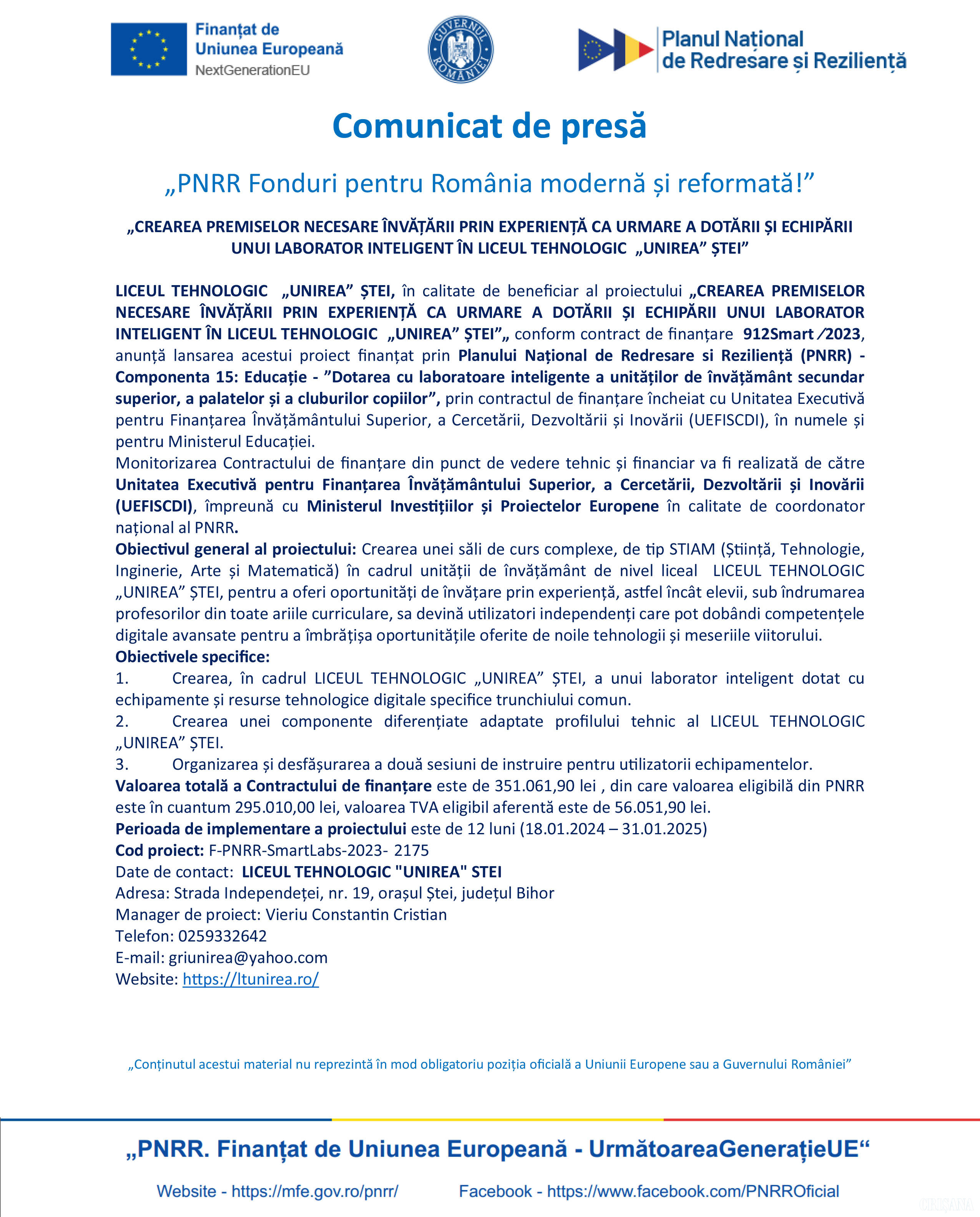Comunicat de presă fonduri PNRR 12 August 2024 139 1 0 Advertorial Comentarii Nu există nici un comentariu. Adaugă opinia ta Poţi adăuga un comentariu completând formularul de mai jos. Decizia de publicare a opiniilor dvs. ne aparţine în întregime. Responsabilitatea juridică pentru conţinutul comentariilor dvs. va revine în exclusivitate. Nume * Subiect * Comentariu