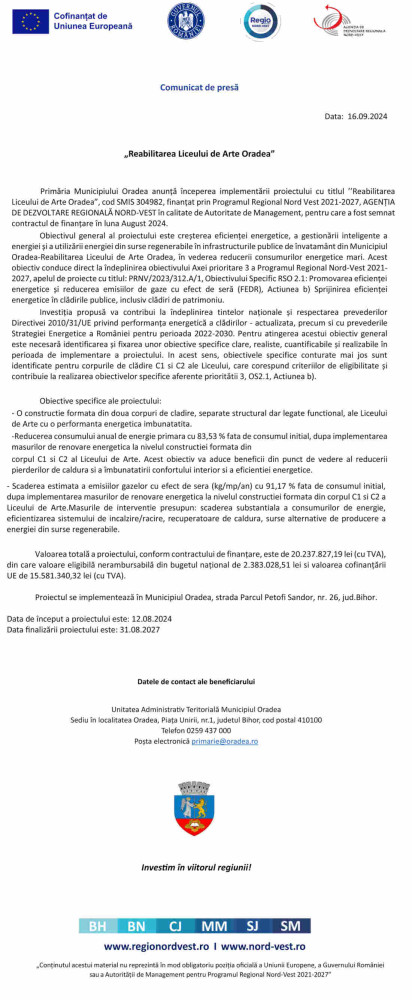 Următoarele două meciuri ale FC Bihor, la TV - Televizaţi cu CSM Slatina şi CS Afumaţi S-a dat startul nominalizărilor - Gala Comunității Bihorene Reluarea lucrărilor la acumularea Corbești - Șase oferte depuse Salvatorii bihoreni s-au perfecționat la Roșia - Școala Națională Salvaspeo, la final Universitatea din Oradea -  A fost inaugurat Centrul de Transfer Tehnologic Festivalul Național de Muzică și Dans din Zărnești - Elevii școlii de muzică Vincerò, la înălțime