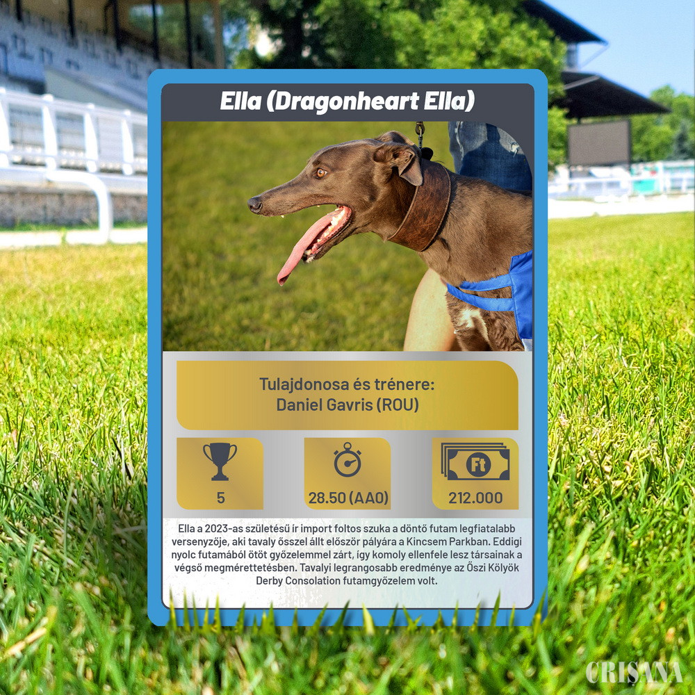 Antrenată de tânărul Dani Gavriș din Sântandrei, Dragonheart Ella și-a adjudecat în premieră Derby-ul internațional disputat la Agar Stadion din Budapesta, dar a mai câștigat anul acesta câteva curse specifice. „Un parcurs frumos pentru Ella. Este un vis devenit realitate”, a declarat, la cald, antrenorul Dani Gavriș. Deși tânăr, acesta nu este la primul succes. În 2023, masculul DragonHeart Pedro, deținut tot de el, a câștigat, de asemenea, Derby-ul Ungariei.