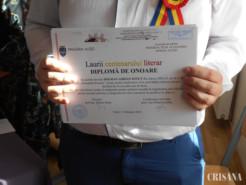 Activitatea intitulată sugestiv „Laurii Centenarului literar” a fost inițiată de Catedra de limbă și literatură română a colegiului. „Anul 2018 ne-a făcut chiar și pe cei mai tineri sau pe cei mai ancorați în prezent și cu visuri mari pentru viitor să ne întoarcem cu privirea spre trecut, ne-a făcut să ciulim urechea pentru a auzi glasul umil și chinuit al celor care sunt acum în pământ tocmai ca să ne țină pe noi. 2018 este anul care ne-a amintit că aparținem unui neam unit….Literatura este un memento pentru viitor și așa am ajuns la primul cuvânt din numele activității: laurii. Activitatea „Laurii Centenarului literar” cheamă tinerii liceului nostru la o horă a ideilor, o horă metaforică în care patriotismul și trecutul își dau mâna cu entuziasmul și puritatea generațiilor noi”, menţionează organizatorii. Invitată de onoare a fost Mihaela Dindelegan, scriitoare și preşedintă a Asociației „Pro Lirica” Oradea. Moderatoarea activității, prof. Ana Mihaela Cadleț, a făcut o scurtă prezentare a activității, după care a invitat-o pe Mihaela Dindelegan să prezinte cartea „Unirea, trecut și viitor”, în care scriitoarea a adunat lucrările elevilor participanți la concursul „Străbunii”. În cuvântul său, scriitoarea, președintă a Asociației Culturale „Pro Lirica” Oradea, a scos în evidență preocuparea asociației de a marca Centenarul Unirii prin prisma viziunii elevilor. În acest sens, cu sprijinul Consiliului Județean, a organizat concursurile de scenarii și creație dedicate elevilor din licee, lucrări cuprinse în paginile cărții „Unirea, trecut și viitor”. Lucrările au evidențiat ideile, gândurile și sentimentele elevilor față de trecutul glorios al neamului românesc, dar și libertatea de exprimare și comunicare prin literatură. În prefața cărții, scriitoarea afirmă: „Proiectat în oglinda Timpului, chipul străbunilor se reflectă în ochii tinerilor liceeni care au luat parte la acest joc al imaginației și al simțirii. Ei ne-au arătat că știu să aibă perspective asupra realității, că pot să vadă cumplitul și suferința, dar că dețin resursele necesare pentru a lansa visuri fastuoase peste scheletul cenușiu al nației sfârtecate de orgolii într-un prezent dominat de corupție”. A urmat festivitatea de premiere a elevilor cu rezultate deosebite în concursurile literare organizate la nivel județean și național. Iată premianții: Diplome de onoare - Bogdan Adrian Ionuț și Ina Rus, pentru întreaga lor activitate de patru ani în liceu; Premii - Bogdan Adrian Ionuț, Dios Giulia, Madar Grațiana, Gherghel Laura, Cabău Maria Larisa, Turcuș Lorena, Blaga Ariana, Modog Andrea, Vandici Salomeea,Duniaș Cristina, gal Evelina, Podhora Paul, Czaky Eduard, Motoșan Patricia, Achim Iuliu. Toți premianții au primit diplome și plicuri cu bani în funcție cu locurile obținute. În total, suma de 1.500 lei donată de Primărie a fost împărțită celor premiați. În cuvântul său, primarul orașului Aleşd, Ioan Todoca, i-a felicitat pe toți elevii premianți și profesoarele care i-au îndrumat și, în mod special, pe Bogdan Adrian Ionuț, pentru talentul său literar, cu care s-a afirmat în concursuri și în comemorarea unor evenimente la nivelul orașului. Evenimentul a fost presărat și susținut de recitări din volumul scriitoarei „Și ne-am unit”, precum și cântece patriotice interpretate de Ina Rus: „Tu, Ardeal” și „Doamne, ocrotește-i pe români”. A mai cântat Buzaș Andrei.