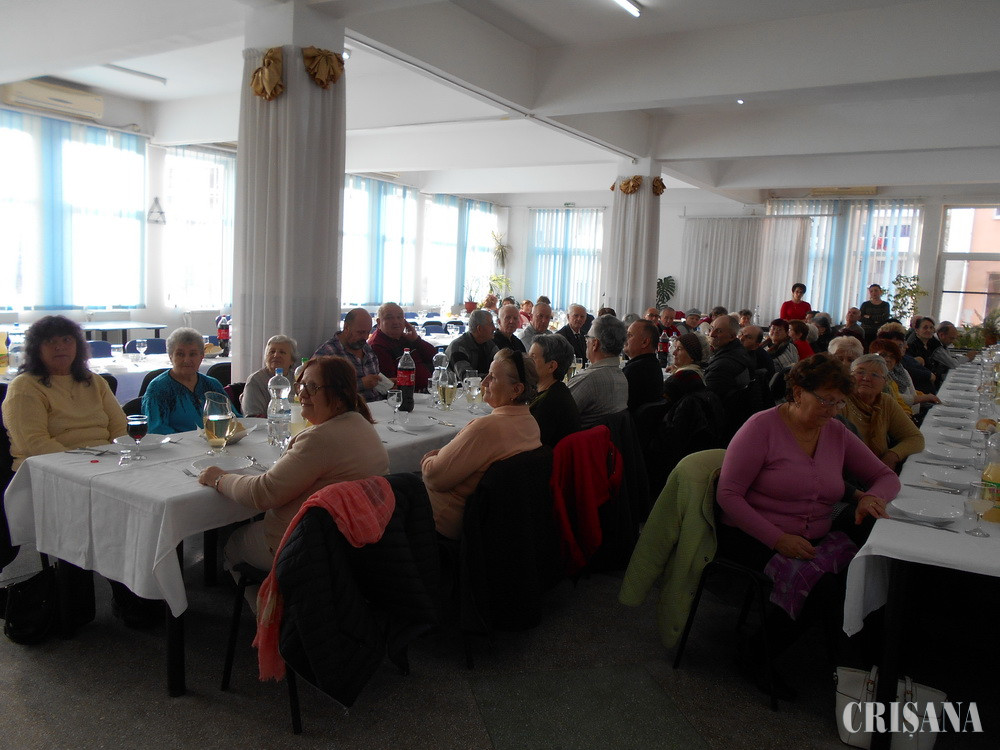 Aceste mese festive sunt întâlniri ale seniorilor care frecventează Centrul de zi cu conducerea orașului, prilej de schimburi reciproce de informații precum și probleme personale. Joi, 19 decembrie, cu ocazia mesei festive prilejuită de Crăciun, Direcția Socială din Primărie, a pregătit un ambient specific marii sărbători a nașterii Lui Iisus Christos. Apoi cei peste 120 de pensionari au fost salutați de Gheorghe Cociorva, director al Direcției Sociale din primărie și de Kojanto Pal, viceprimar, care le-a urat tuturor „Sărbători fericite” și multă sănătate. Apoi cei doi preoți ortodocși, Ovidiu Bocșan și Călin Ioniță, au colindat împreună cu seniorii. Surpriza a fost Grupul de colindători ai Ansamblului „Piatra Șoimului” din Peștiș, alcătuit din tineri, care a susținut un micro recital de colinde, alături de Gavril Tanc, conducătorul și instructorul ansamblului. Directorul Cociorva gazda evenimentului, le-a mulțumit și i-a răsplătit pe colindători cu daruri, conform tradiției.