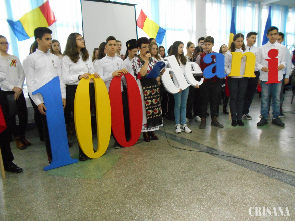 Marți, 26 noiembrie, ziua dedicată nașterii patronului spiritual al colegiului, Alexandru Roman, o delegație de elevi conduși de prof. Melania Joldea, director adjunct, s-a deplasat la Aușeu, locul de naștere al marelui patriot, participând la ceremonialul omagial organizat de Primăria comunei și școlile din comună, la bustul marelui om de cultură și patriot, Alexandru Roman, ce tronează în piațeta din fața primăriei. S-a depus o coroană de flori și au contribuit la programul artistic în cinstea Centenarului. Miercuri, 27 noiembrie, în cantina socială, s-a desfășurat un adevărat maraton artistic, un spectacol de suflet românesc, în care sentimentul patriotic a cuprins deopotrivă pe interpreți și publicul spectator. Adresându-se celor prezenți, dar în special elevilor, directoarea instituţiei, prof. ing. Valeria Vasile, a afirmat: „Acum 100 de ani, generația Marii Uniri și-a avut idealul său național și a știut să-l împlinească, mulți români făcând jertfa supremă pe câmpurile de luptă ale Marelui Război. Astăzi, pentru noi, privind la jertfa lor, considerăm că Centenarul înseamnă principii, credințe și valori, căci România s-a construit pe valori, principii și mai ales credință. Principala dimensiune a centenarului este aceea educativă, pentru că tânăra generație, societatea românească în ansamblu trebuie să-și însușească valorile, atitudinile și convingerile patriotice și să înțeleagă mesajul și sacrificiul generației Marii Uniri. De aceea, credem că proiectarea și derularea unor programe educaționale de istorie, cultură și memorie a centenarului ar putea să reconcilieze tânăra generație cu istoria și să cultive valori și atitudini care să ducă mai departe spiritul generației de la 1918. De modul cum vom ști să marcăm Centenarul Marii Uniri depinde și modul cum vom proiecta și imagina viitorul nostru ca națiune, cum vom construi România de mâine.” A urmat un program artistic structurat pe prezentarea tuturor regiunilor istorice, în care s-a scos în evidență tradiții și specific în port, obiceiuri și cultură. A impresionat strădania organizatorilor de a prezenta costume autentice din toate zonele țării, completate cu tradiții, dansuri, obiceiuri, folosind chiar limbajul provinciei. Momentul de început al manifestării a fost realizat de corul colegiului, dirijat de prof. Corina Ionescu, care a introdus în atmosfera Centenarului câteva semnificative cântece patriotice. De un real succes s-a bucurat și sceneta scrisă și regizată de talentatul elev Adrian Bogdan, din cls. a XII-a, intitulată. „Povestea lui Ferdinand cel loial”, premiată la concursuri de gen din Oradea. Au fost prezentate pe scenă, în ordine, regiunile: Muntenia și Oltenia, coordonatori prof. Mădălina Marian și Lidia Ciucle; Moldova, prin sceneta „Moș Ioan Roată și Unirea”, coordonator prof. Monica Cuciula; Dobrogea, prin sceneta „Bairam în Dobrogea”, coordonator prof. Laura Bradea; Transilvania, prin obiceiuri de iarnă, coordonator prof. Carmen Ghiț. Un spațiu generos a fost alocat unor datini și obiceiuri ale etniilor: ritmuri slovace, coordonatori prof. Şarlota Băican, Ana Mihaela Cadleț și prof. Sanda Gârda; csardas, coordonator prof. Marius Judea; „În căruțe colorate trec țiganii”, coordonator prof. Anca Toderaș. Un loc aparte a fost acordat prezentării regiunilor: Maramureș - „Maramureș plai cu flori”, coordonator prof. Varvara Venter, Iulia Bradea și Valentina Ardelean; Banat - „Banatu-i fruncea”, coordonator Romina Gavrilaș; Crișana - „Bădiță de la Bihor”, coordonatori prof. Carmen Dios şi Angela Ardelean. Spectacolul a atins apogeul cu Ansamblul „Datina” junior, cu frumoase dansuri de pe Valea Crișului Repede, coordonator Cristian Strugar. Imnul Centenarului interpretat de corul colegiului a încheiat manifestarea.