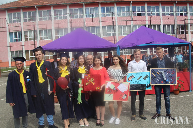 În acest an, clinchetul ultimului clopoțel pentru absolvenți a sunat „altfel” deoarece festivitatea de închidere s-a desfășurat în cadrul Programului național „Școala altfel”, derulată pe parcursul acestei săptămâni, 21-25 mai, în care toți elevii și cadrele didactice sunt implicați într-un program bine structurat de conducerea colegiului, compus din prof. ing. Lucian Cernea și prof. Viorica Mone, director, respectiv directoare adjunctă, împreună cu prof. ing. Adrian Gruie, consilier educativ. Un adevărat „coridor” de flori a fost format de colegii din clasele mai mici pentru absolvenții acestei generații, care au fost primiți cu ropote de aplauze de către cei prezenți, organizați într-un careu plin de emoții. După intonarea Imnului Național și al Europei, preotul paroh Adrian Suciu, fost absolvent al acestui colegiu, a ținut o slujbă de mulțumire și binecuvântare. Prezentarea invitaților, printre care am remarcat prezența ec. Marius Cioară, absolvent al acestui colegiu în urmă cu 15 ani, viceprimarul orașului Ștei; comisar Liviu Mortan, Șeful Poliției orașului Ștei; Debora Negrea, din partea Comitetului de Părinți, a fost făcută de prof. ing. Adrian Gruie. „Momentul cursului festiv este unul de bucurie, un moment important din viața voastră, dar și a părinților voștri, care v-au susținut, v-au încurajat și s-au sacrificat pentru voi. Este un moment de sfârșit și de un nou început, pentru că o nouă viață vă așteaptă în față. Nu îmi rămâne decât să vă urez ca tot ce ați acumulat în acești ani să vă permită să pășiți în viață siguri, stăpâni pe voi, să vă bucurați de realizări personale deosebite. Suntem siguri că, prin voi, numele Colegiului Tehnic „Unirea” Ștei va fi recunoscut în toate centrele universitare din țară și străinătate”, a spus, printre altele, directorul Lucian Cernea în discursul său, după care invitații au susținut câteva alocuțiuni. Un moment plin de emoție a fost felicitarea prof. Dorina Horge și Vasile Pavel, care, cu această ocazie, au spus și ei adio școlii, intrând în rândul pensionarilor, după o viață dedicată catedrei. Felicitări a primit și Florica Pașca, administrator de patrimoniu, într-un cadru mai restrâns însă, deoarece a împlinit o jumătate de secol chiar în această zi deosebită din viața colegiului. A urmat festivitatea de premiere a șefei de promoție, Antonia Maria Bici, care a absolvit cu nota 10, urmată de nominalizarea și premierea cu bani din partea Primăriei și a Consiliului Local Ștei a elevilor care au obținut premii la olimpiadele școlare, concursurile pe meserii, artistice și sportive. La Olimpiada Școlară faza națională s-au obținut două mențiuni – Andreea Gruie, clasa a XII-a A, și Delia Gruie (X A), ambele la matematică, iar la faza interregională două premii I, un premiu special punctaj maxim – Antonia Maria Bici (XII A), matematică, trei premii II, două premii III și trei mențiuni. La faza județeană s-au obținut două premii I, 9 premii II, 6 premii III, 9 mențiuni și un premiu special, Antonia Maria Bici, limba engleză. În cadrul fazei zonale la concursuri artistice s-au obținut trei premii I, patru premii II, în timp ce la concursuri tehnice, trei premii II, două premii III, trei mențiuni și trei premii speciale, Alin Popa, Robert Păulaș, Florin Negrea, toți din clasa a XII-a C. Din patea diriginților din clasa a XII-a a ținut un discurs prof. Mihaela Lucan, iar prof. Rodica Drăgoi a înmânat Certificate Europass celor 48 de elevi care au participat la mobilitățile de proiecte în străinătate, derulate în cadrul colegiului. Din partea absolvenților a ținut un discurs șefa de promoție, Antonia Maria Bici, iar din partea elevilor din clasa a XI-a eleva Andreea Gruie. Cheia clasei a fost predată de Antonia Maria Bici (a XII-a A), șefa de promoție, foștilor (de acum) colegi, reprezentați de eleva Andreea Gruie (a XI-a A). La final s-a cântat „Gaudeamus”, iar cerul a fost „invadat” cu baloane multicolore, care au „deranjat” zborul porumbeilor în tentativa lor de a fi și ei „martori” la o zi aparte din viața Colegiului Tehnic „Unirea” Ștei.