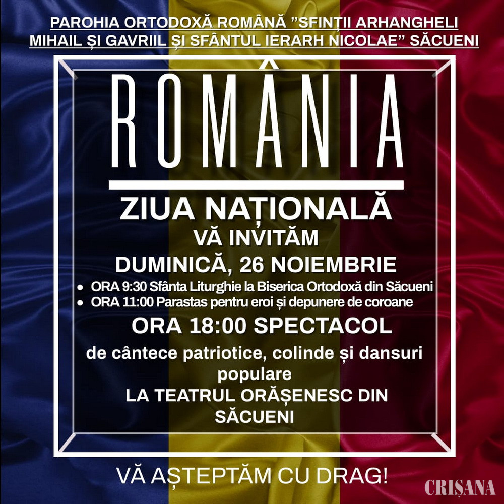 Duminică, 26 noiembrie, la Săcueni - Ziua Națională a României, sărbătorită în avans