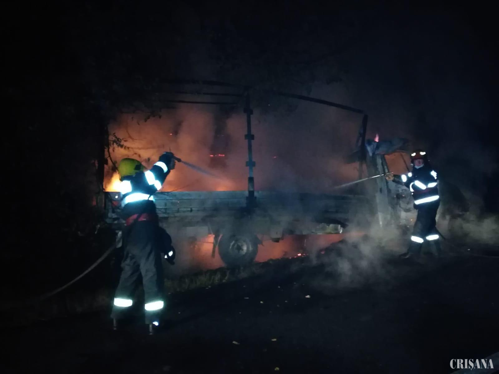 Evenimentul, a cărui cauză probabilă a constituit-o un scurtcircuit electric, s-a soldat cu arderea autovehiculului în proporție de circa 90% și a 160 de cutii de încălțăminte. Tot vineri dimineață, în jurul orei 08.25, în dispeceratul Inspectoratului pentru Situații de Urgență “Crișana” a fost primit un apel care sesiza producerea unui eveniment similar în localitatea Cheriu, comuna Oșorhei. Pentru gestionarea situației de urgență semnalate, la adresa indicată de apelant, au fost mobilizați pompierii Detașamentului 1 Oradea, care au localizat și lichidat incendiul în aproximativ 15 minute de la primirea apelului prin 112. În urma producerii incendiului, provocat, cel mai probabil, de un conductor electric defect, au ars materialele combustibile din compartimentul motor, capota, aripile și masca față. Din fericire, nu au existat perspane rănite.