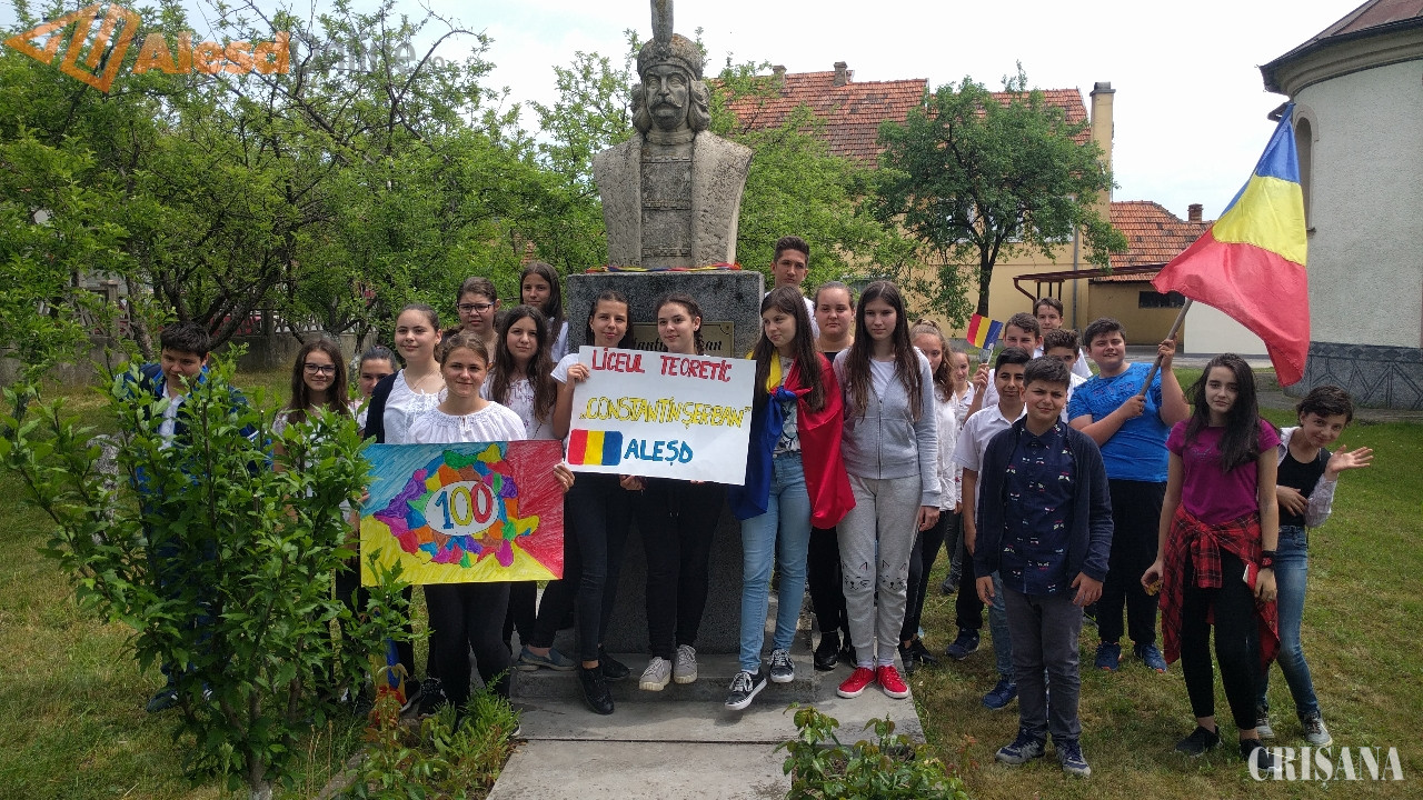 Grupul s-a întors la fel de entuziast, iar în fața Primăriei Aleșd copiii au dorit să facă un popas și să scandeze: „România, La mulţi ani!”.