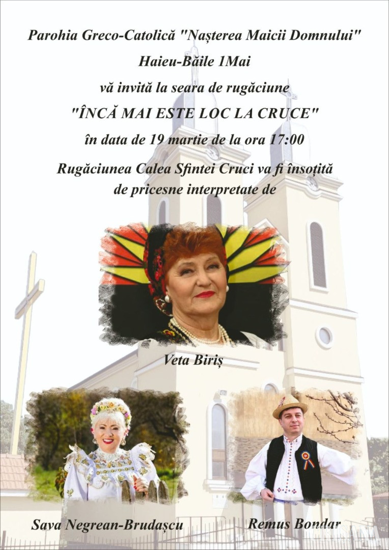 În data de 19 martie, duminică, de la ora 17.00, la Parohia greco-catolică Haieu - Băile 1 Mai, se va organiza o seară spirituală de rugăciune şi un concert de pricesne.
