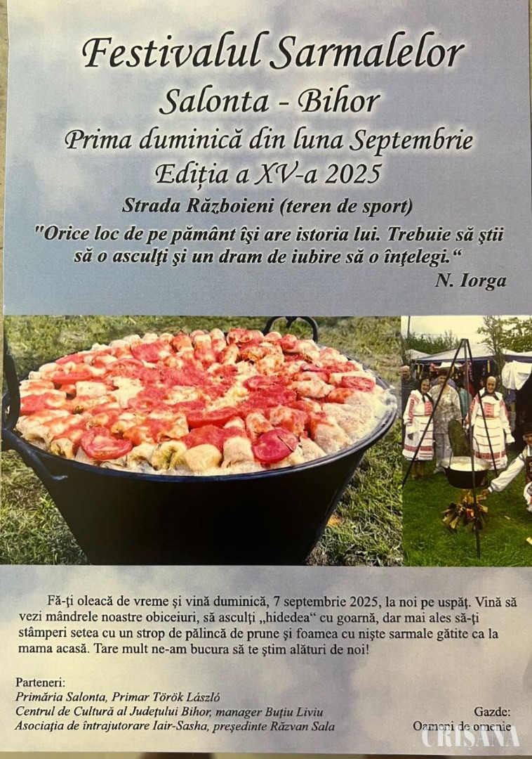„Am ales prima duminică din septembrie, tocmai pentru a oferi o continuitate ușor de ținut minte și de transmis mai departe. Așa a început totul: timid, cu un buget de 4.000 de lei, 2.500 de sarmale pregătite cu grijă, o scenă improvizată din câțiva paleți și aproximativ 250 de „curioși”. Atunci, casa ne-a fost curte, iar bunătatea și priceperea doamnei Maria Budău au pus în farfurie gustul autentic care ne-a cucerit pe toți. Mâinile ei de aur au plămădit sarmalele după rețete păstrate cu sfințenie, iar numele ei – Maria Palii – a rămas un brand și un simbol al acestui festival. Anii au trecut. Bugetul s-a mărit, scena a devenit tot mai solidă, programul artistic mai bogat, iar oamenii au venit din ce în ce mai mulți. Din câteva sute de participanți am ajuns la peste 2.500 de gurmanzi, pentru care pregătim astăzi 25.000 de sarmale oferite gratuit”, transmit organizatorii.
