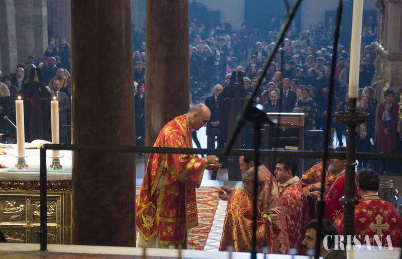 Duminică, aproximativ 800 de români au fost prezenţi la Bazilica Sant’Ambrogio, unde a fost săvârşită Sfânta Liturghie cu ocazia pelerinajului anual al românilor greco-catolici din Italia, de această dată la Milano, ţinânând cont şi de importanţa Centenarului Marii Uniri. Slujba a fost oficiată de PSS Virgil Bercea, împreună cu un sobor de preoţi. La începutul Sfintei Liturghii credincioşii români au primit salutul arhiepiscopului de Milano, Mons. Mario Delpini, care şi-a dorit foarte mult să fie în mijlocul românilor, chiar dacă agenda dânsului este una foarte încărcată. În cuvântul de învăţătură, episcopul a menţionat reîntoarcerea la unele valori prin respect, prin eleganţă, învăluite de puterea credinţei, în care crucea şi rugăciunea dau un sens profund vieţii. Ambasadorul Zăpîrţan, în salutul său, a cerut românilor să rămână uniţi în acţiuni şi simţiri. Ambasadorul Extraordinar şi Plenipotenţiar al României în Italia, Excelenţa Sa George Bologan, în cuvântul său plin de entuziasm a specificat printre altele că „Fiecare român este un ambasador, în primul rând, un amabasador care să ofere celorlalţi exemplul onoarei, al responsabilităţii şi al demnităţii”. La acest eveniment, un aport esenţial l-a avut Parohia greco-catolică din Milano, păstorită de părintele Robert Popa, care a făcut posibil ca acest eveniment să fie unul pregătit la înălţimea evenimentului sărbătorit, toate detaliile fiind foarte bine puse la punct. Momentul de dumincă s-a încheiat printr-o bucurie comună trăită împreună la o agapă frăţească pe care pelerinii au avut ocazia să o împărtăşească.