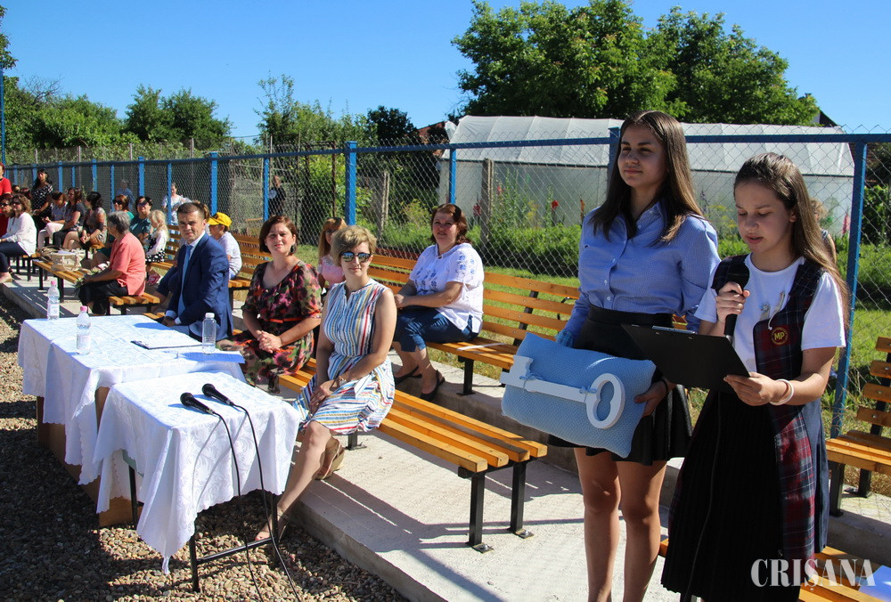 Ultimul clopoțel, pentru cei 95 de absolvenți din clasa a VIII-a, a sunat vineri, 10 iulie, pe noua bază sportivă, recent finalizată, într-un cadru, așadar, care să poată respecta reglementările distanțării sociale, într-o zi memorabilă din viața absolvenților.