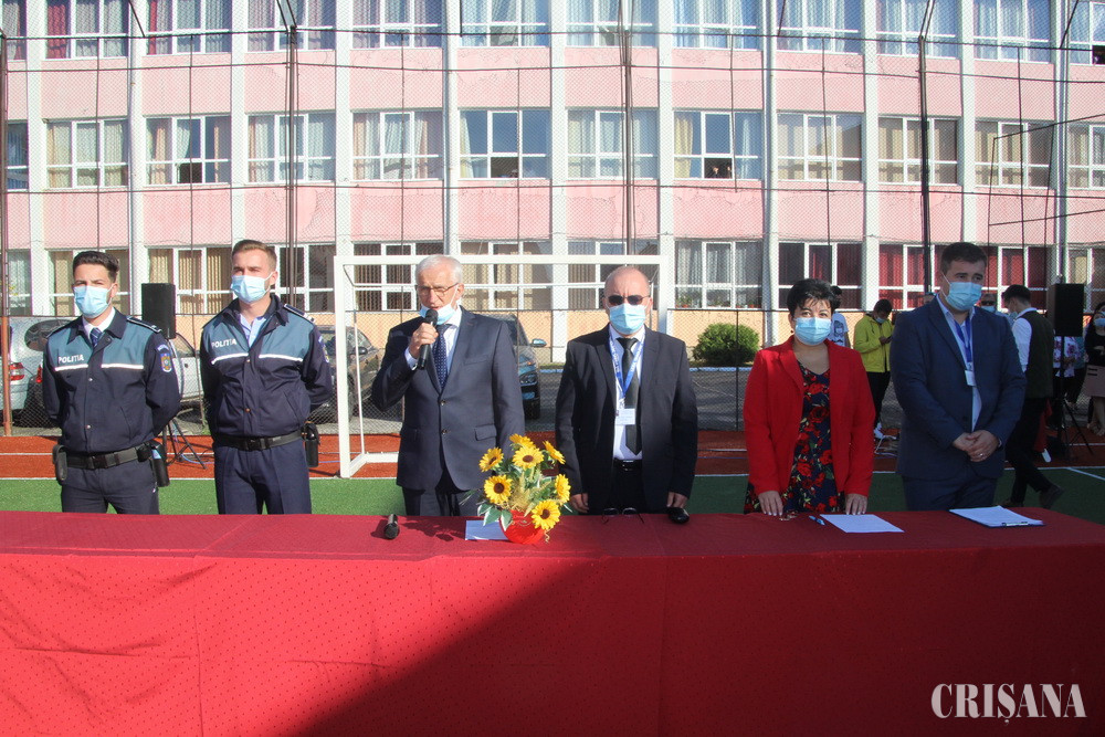 „Pentru fiecare dintre noi acum este un moment de sărbătoare, este începutul unui nou an școlar, spre care privim cu optimism. Dorim să credem că ne aflăm la capătul unui parcurs anevoios care a determinat regândirea profundă a procesului de învățământ. Este firesc să se desfășoare orele cu prezența fizică a copiilor și a elevilor în grupe și clase, iar pentru acest lucru trebuie să ne implicăm cu toții. Avem resursele necesare pentru a face față schimbării, pentru a privi încrezători în viitor. Stimați colegi, IȘJ Bihor vă mulțumește pentru profesionalismul cu care ați gestionat provocările survenite în ultima perioadă în sistemul educațional și pentru modul exemplar în care ați colaborat cu toți factorii implicați în procesul instructiv-educativ”, a punctat, printre altele, prof. Cristian Andru, directorul CN „Avram Iancu”. În acest an aici vor învăța 482 de elevi, pregătiți de 35 de profesori, iar în cadrul CSȘ „Avram Iancu” vor activa 102 sportivi în 6 grupe, sub comnda a doi profesori.