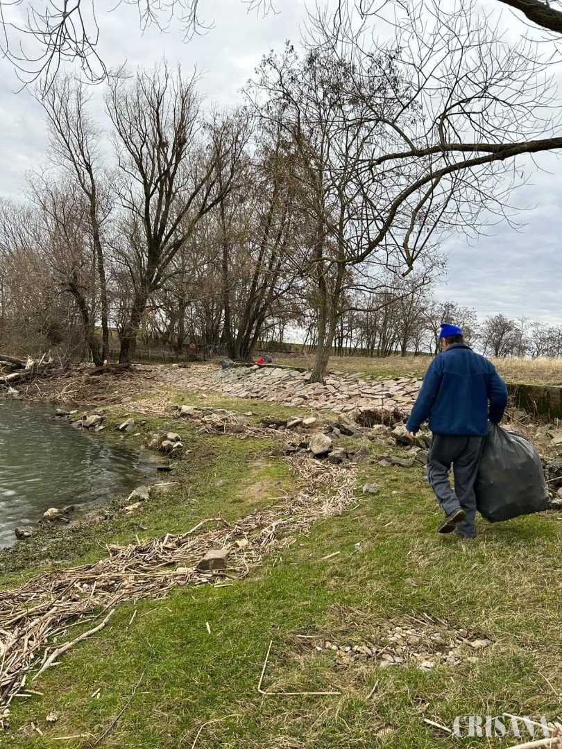 O echipă de la ABA Crișuri a igienizat miercuri, 14 februarie, malul Crișului Repede, în localitatea bihoreană Tărian. De la încălțăminte uzată, până la sticlă și pet-uri, toate zăceau împrăștiate pe malul apei.